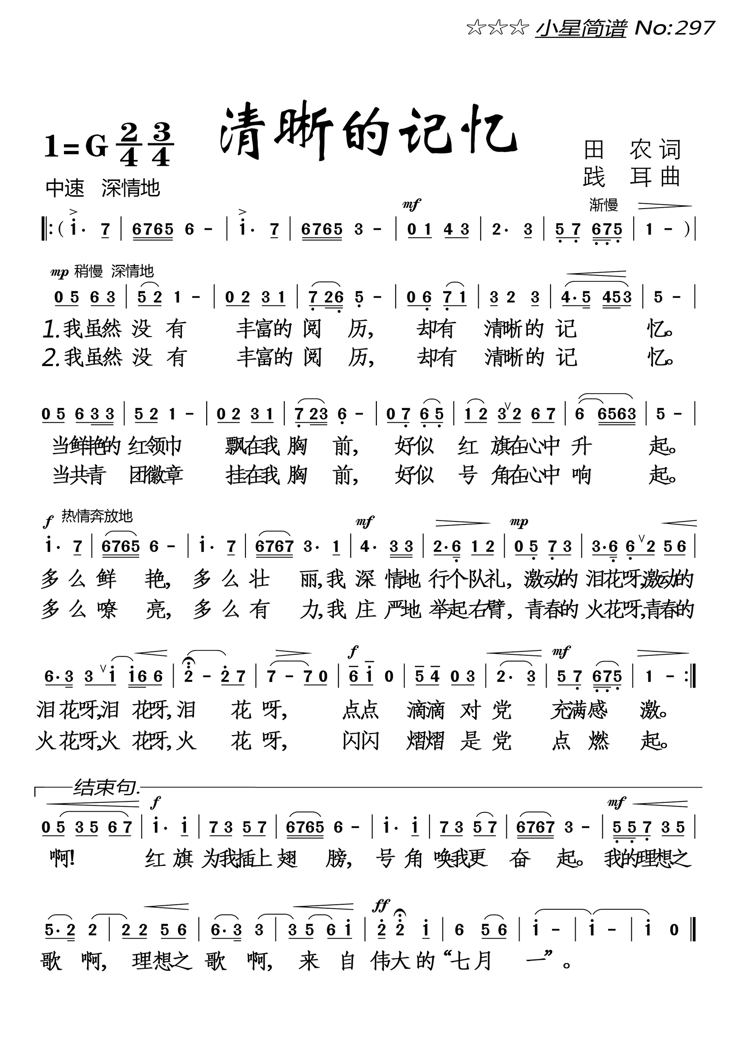 《吴雁泽《清晰的记忆简谱》》内容来自于互联网,不能保证内容的准确性与完整性,仅供学习交流欣赏,请勿用于其它用途,内容版权归原作者及来源网站所有,如有侵犯到您的权益请来信告知,我们将及时删除。