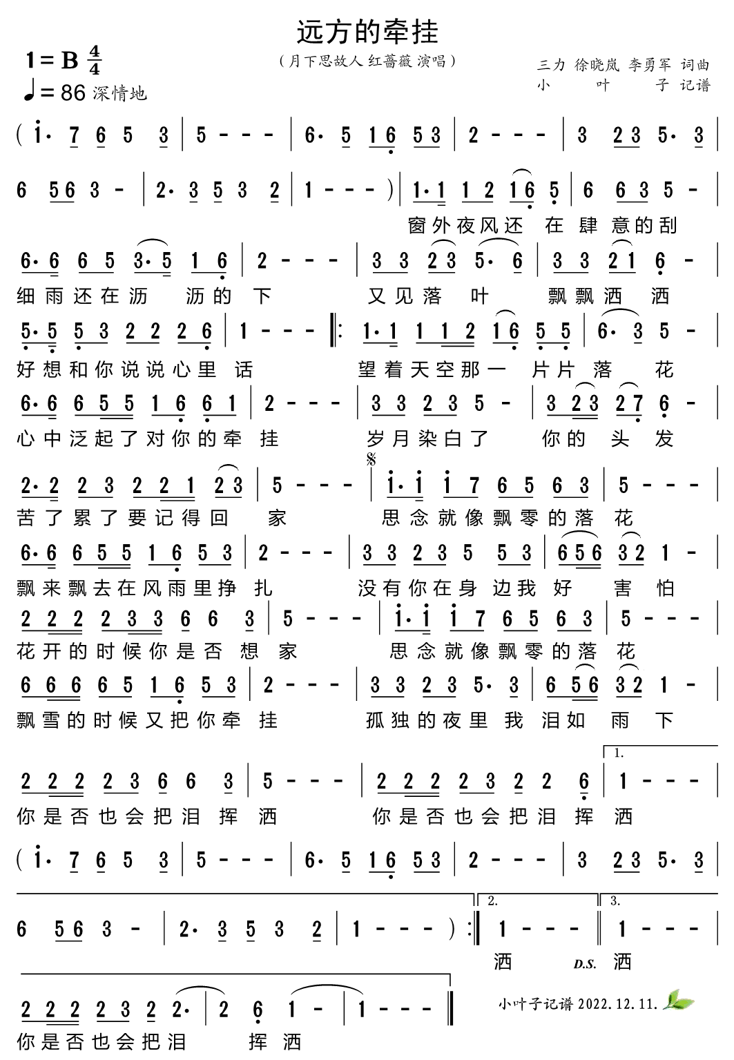 月下思故人《远方的牵挂简谱》