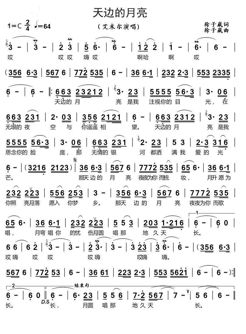 《艾米尔《天边的月亮简谱》》内容来自于互联网,不能保证内容的准确性与完整性,仅供学习交流欣赏,请勿用于其它用途,内容版权归原作者及来源网站所有,如有侵犯到您的权益请来信告知,我们将及时删除。