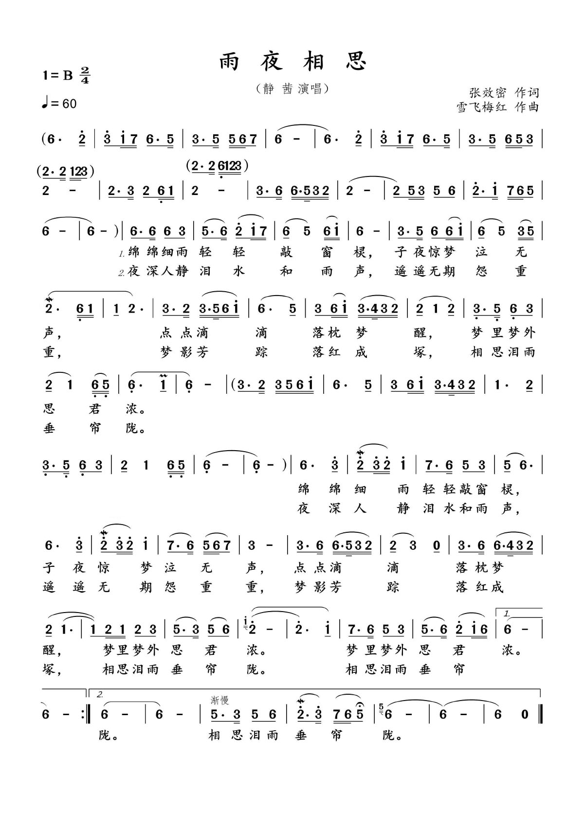 《静茜《雨夜相思简谱》》内容来自于互联网,不能保证内容的准确性与完整性,仅供学习交流欣赏,请勿用于其它用途,内容版权归原作者及来源网站所有,如有侵犯到您的权益请来信告知,我们将及时删除。