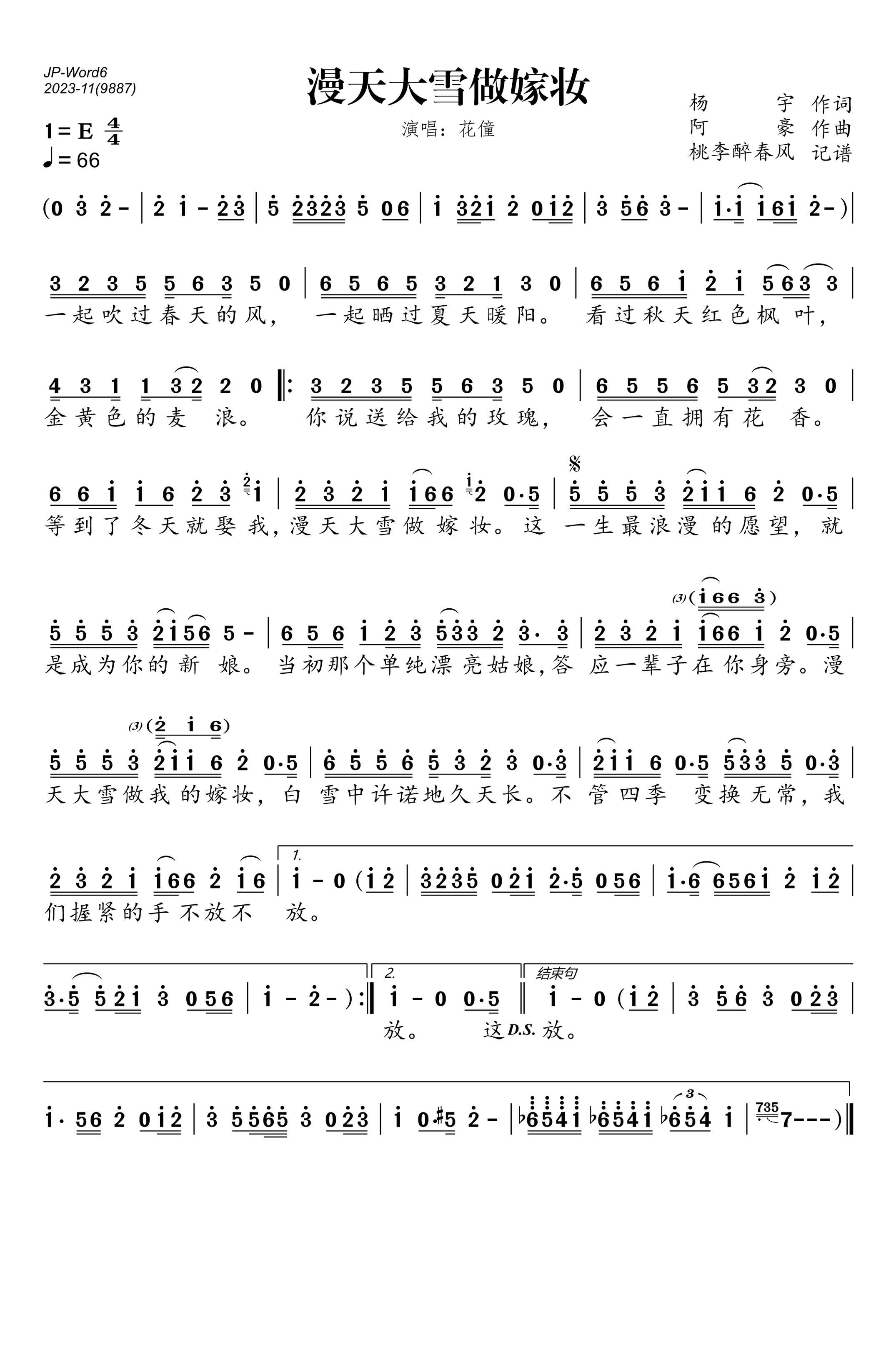 《花僮《漫天大雪做嫁妆简谱》》内容来自于互联网,不能保证内容的准确性与完整性,仅供学习交流欣赏,请勿用于其它用途,内容版权归原作者及来源网站所有,如有侵犯到您的权益请来信告知,我们将及时删除。