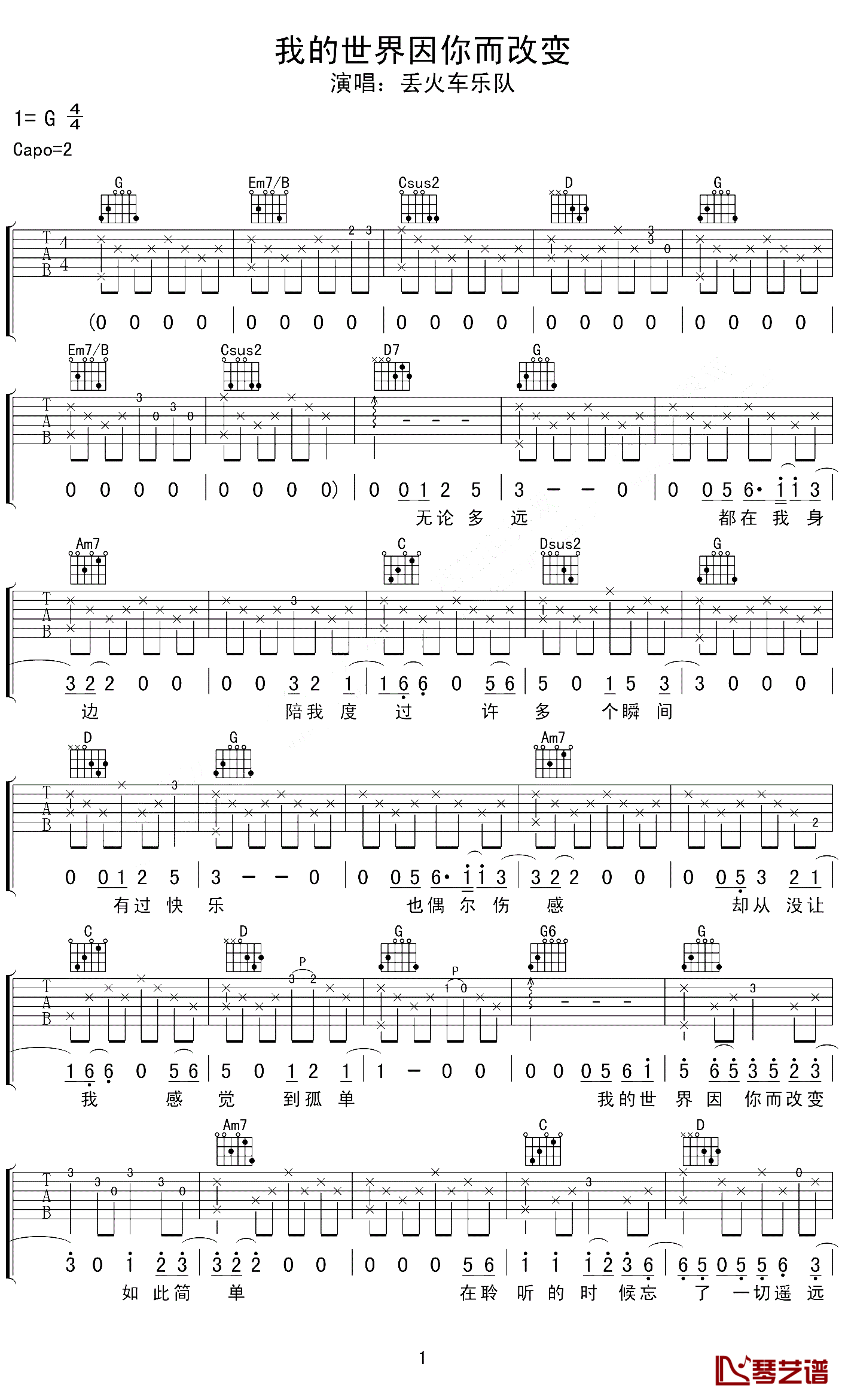 《丢火车《我的世界因你而改变吉他谱》》内容来自于互联网,不能保证内容的准确性与完整性,仅供学习交流欣赏,请勿用于其它用途,内容版权归原作者及来源网站所有,如有侵犯到您的权益请来信告知,我们将及时删除。