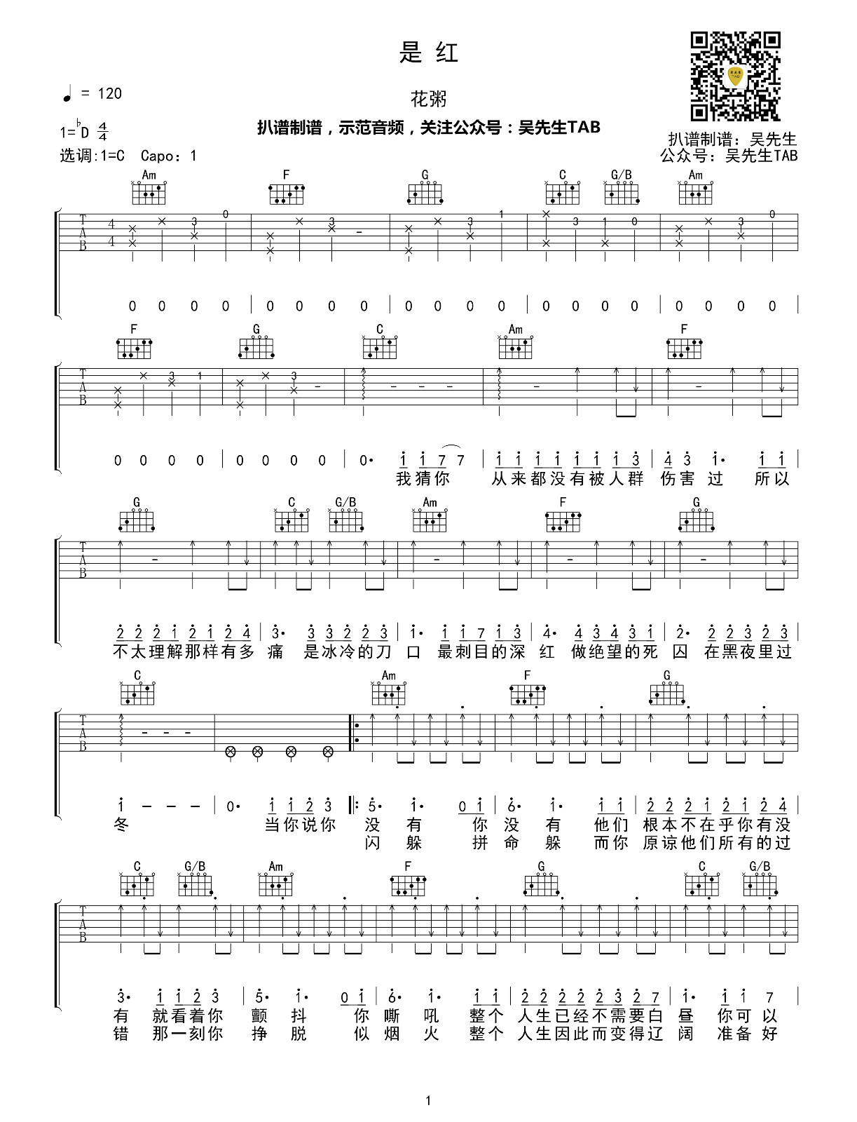 《花粥《是红吉他谱》》内容来自于互联网,不能保证内容的准确性与完整性,仅供学习交流欣赏,请勿用于其它用途,内容版权归原作者及来源网站所有,如有侵犯到您的权益请来信告知,我们将及时删除。