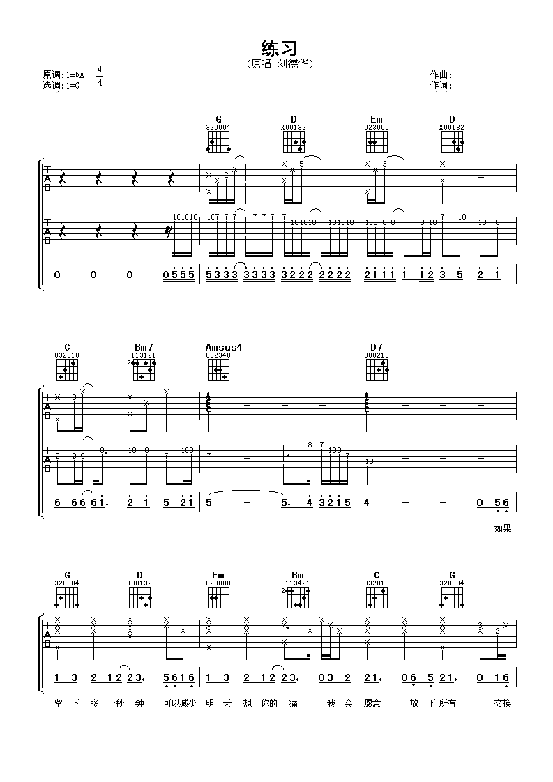 《刘德华《练习吉他谱》》内容来自于互联网,不能保证内容的准确性与完整性,仅供学习交流欣赏,请勿用于其它用途,内容版权归原作者及来源网站所有,如有侵犯到您的权益请来信告知,我们将及时删除。