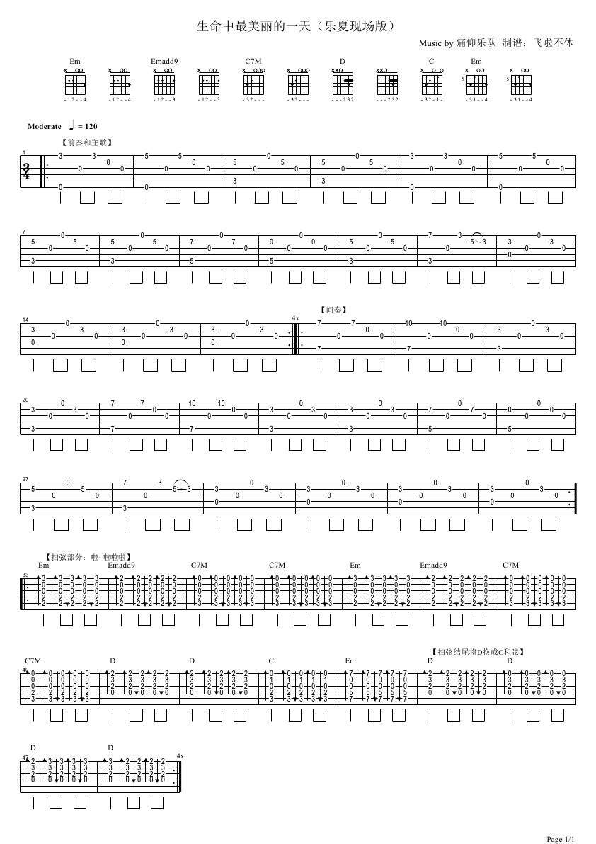 《痛仰乐队《生命中最美丽的一天吉他谱》》内容来自于互联网,不能保证内容的准确性与完整性,仅供学习交流欣赏,请勿用于其它用途,内容版权归原作者及来源网站所有,如有侵犯到您的权益请来信告知,我们将及时删除。