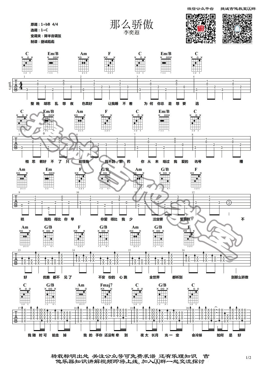 这是一首经典代表歌曲,《那么骄傲》,由李奕遐翻唱,原唱为金海心。歌曲源自内地爱情剧《都是天使惹的祸》,至今仍然受到广大观众的喜爱。金海心独特的嗓音带有微鼻音和慵懒感,宛如微风拂过风铃,悠扬动听。吉他谱采用bB原调,选调C,并降半音调弦,编配出品由捷诚吉他教室制