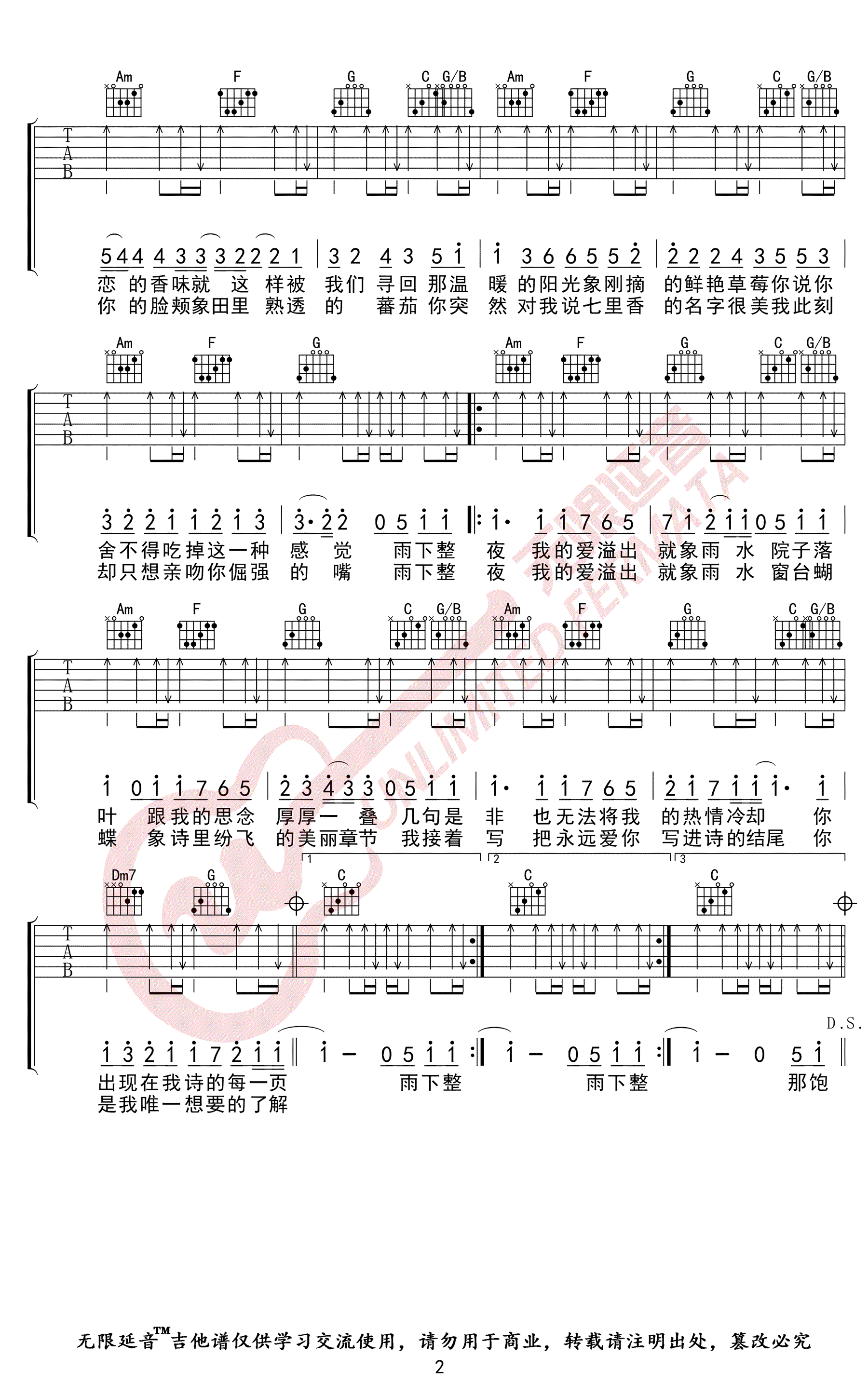 《周杰伦《七里香吉他谱》》内容来自于互联网,不能保证内容的准确性与完整性,仅供学习交流欣赏,请勿用于其它用途,内容版权归原作者及来源网站所有,如有侵犯到您的权益请来信告知,我们将及时删除。