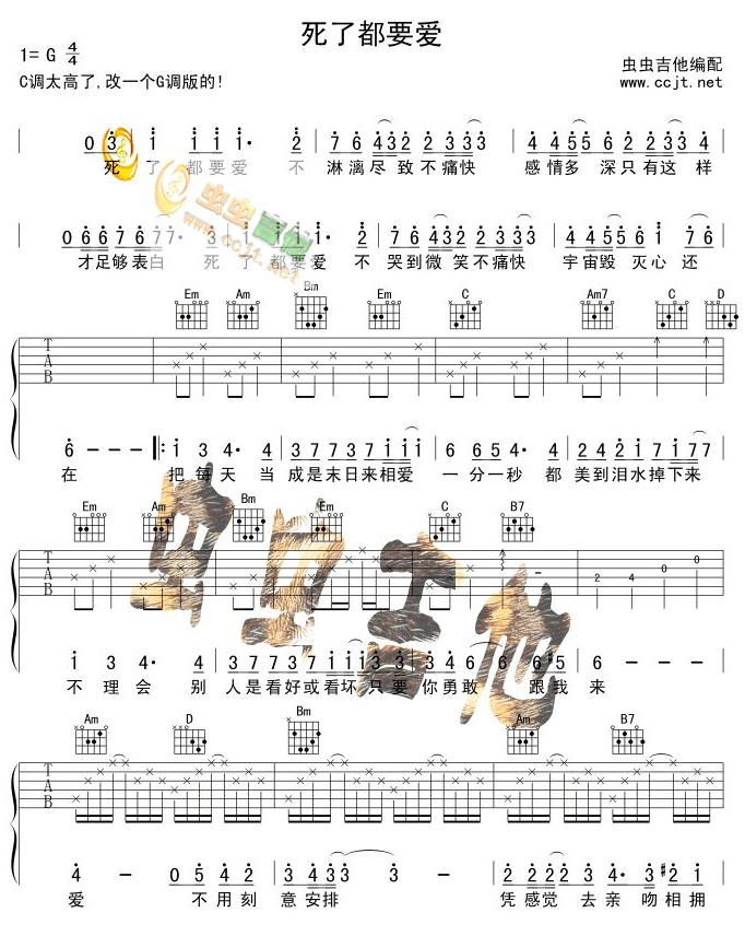 《信乐团《死了都要爱吉他谱》》内容来自于互联网,不能保证内容的准确性与完整性,仅供学习交流欣赏,请勿用于其它用途,内容版权归原作者及来源网站所有,如有侵犯到您的权益请来信告知,我们将及时删除。