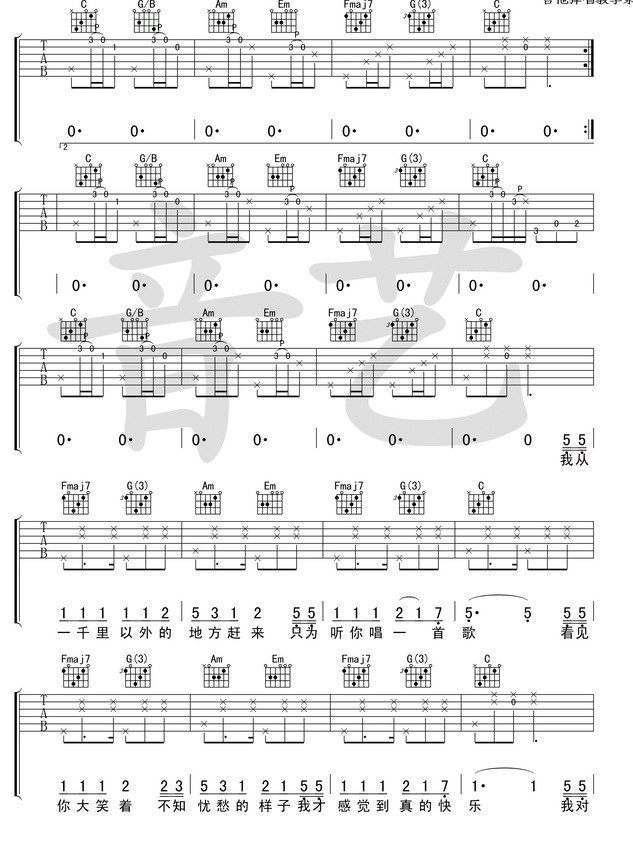 《花粥《小相思吉他谱》》内容来自于互联网,不能保证内容的准确性与完整性,仅供学习交流欣赏,请勿用于其它用途,内容版权归原作者及来源网站所有,如有侵犯到您的权益请来信告知,我们将及时删除。