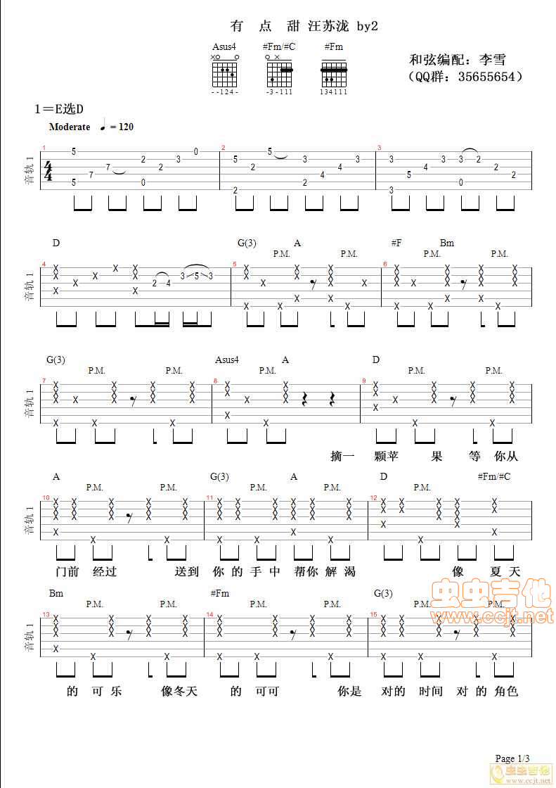 《汪苏泷《有点甜吉他谱》》内容来自于互联网,不能保证内容的准确性与完整性,仅供学习交流欣赏,请勿用于其它用途,内容版权归原作者及来源网站所有,如有侵犯到您的权益请来信告知,我们将及时删除。
