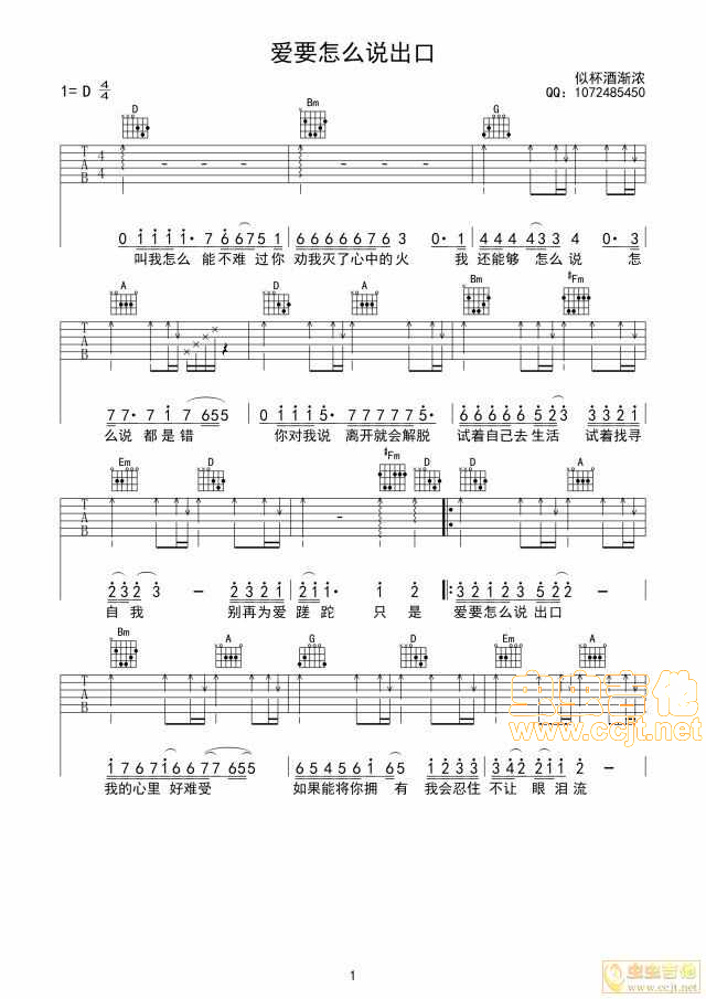 《李宗盛《爱要怎么说出口吉他谱》》内容来自于互联网,不能保证内容的准确性与完整性,仅供学习交流欣赏,请勿用于其它用途,内容版权归原作者及来源网站所有,如有侵犯到您的权益请来信告知,我们将及时删除。