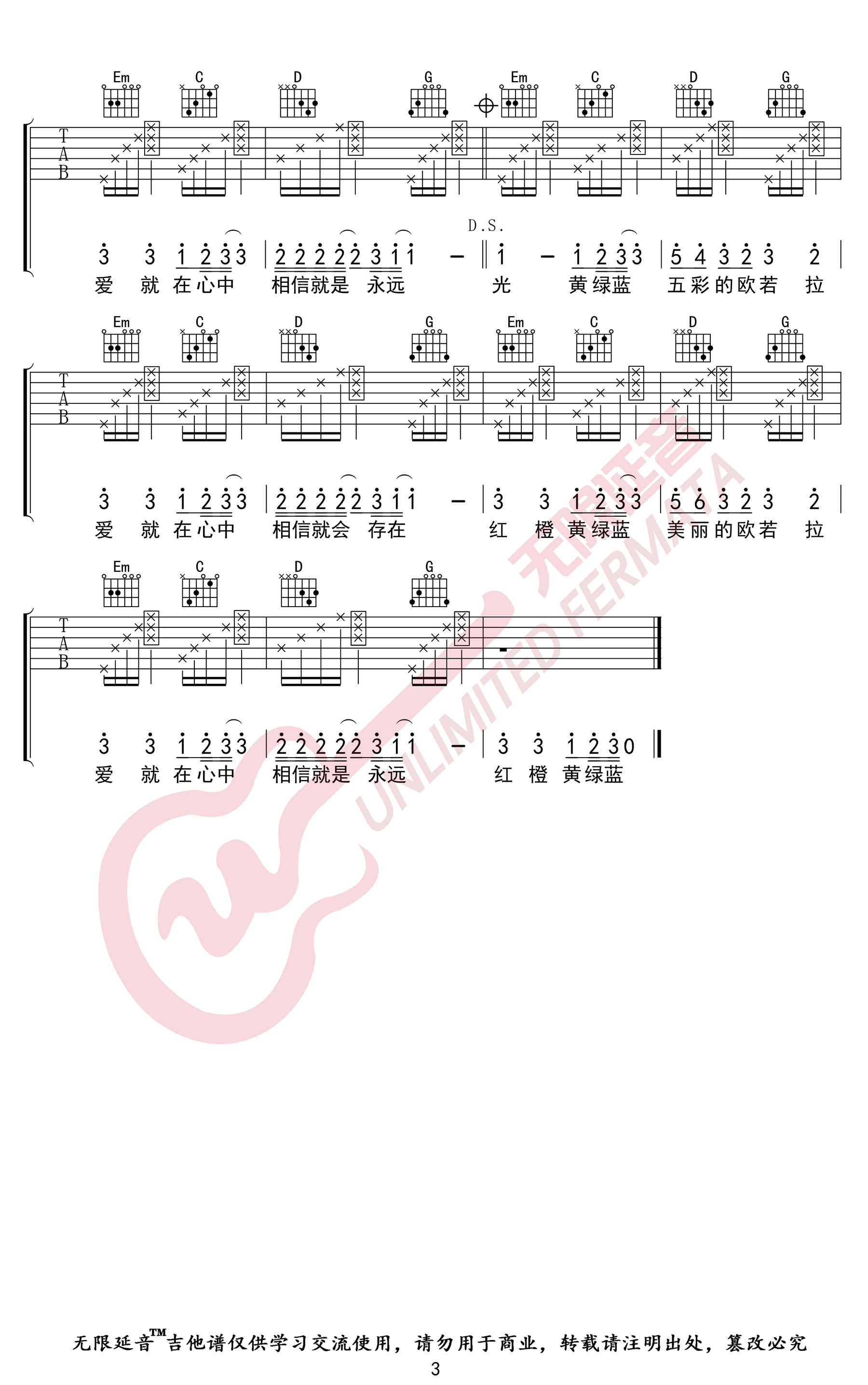 《张韶涵《欧若拉吉他谱》》内容来自于互联网,不能保证内容的准确性与完整性,仅供学习交流欣赏,请勿用于其它用途,内容版权归原作者及来源网站所有,如有侵犯到您的权益请来信告知,我们将及时删除。