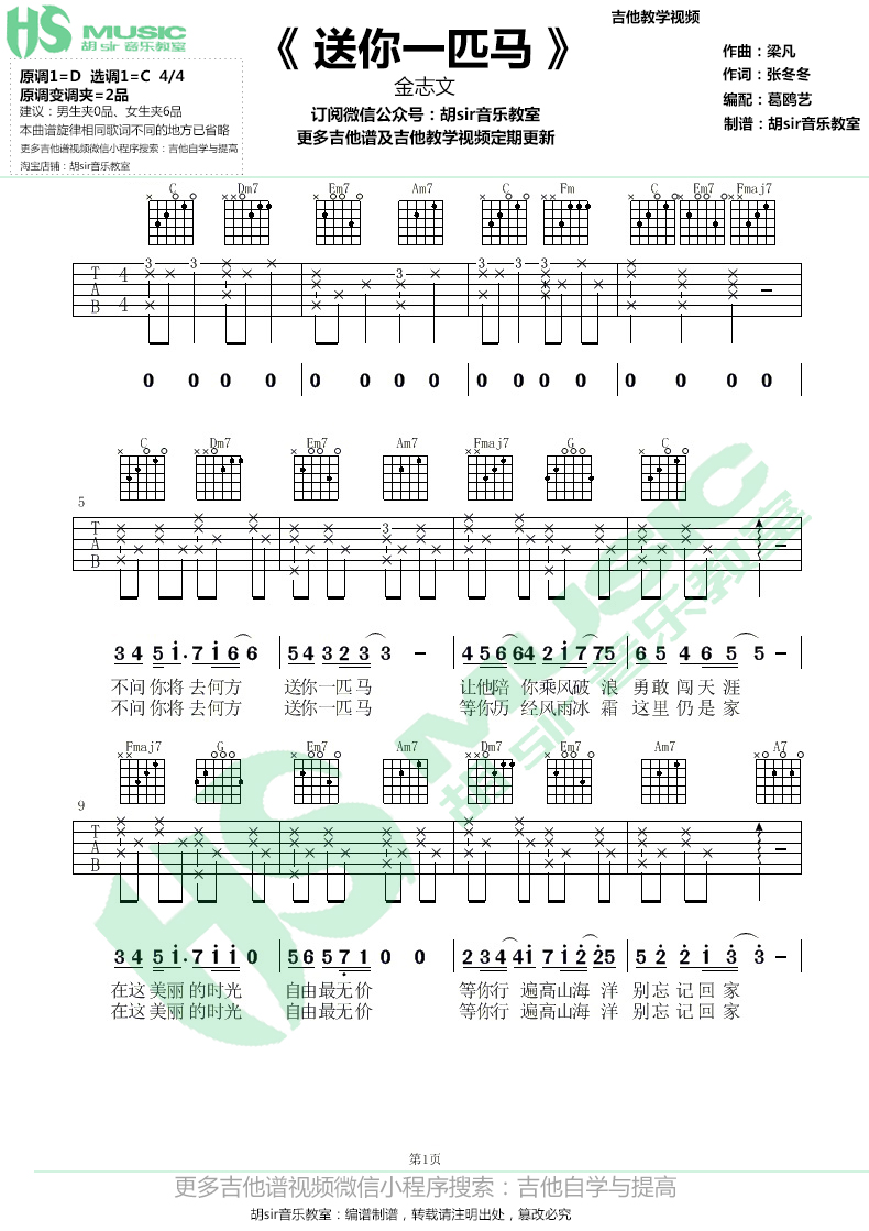 《《送你一匹马吉他谱》》内容来自于互联网,不能保证内容的准确性与完整性,仅供学习交流欣赏,请勿用于其它用途,内容版权归原作者及来源网站所有,如有侵犯到您的权益请来信告知,我们将及时删除。