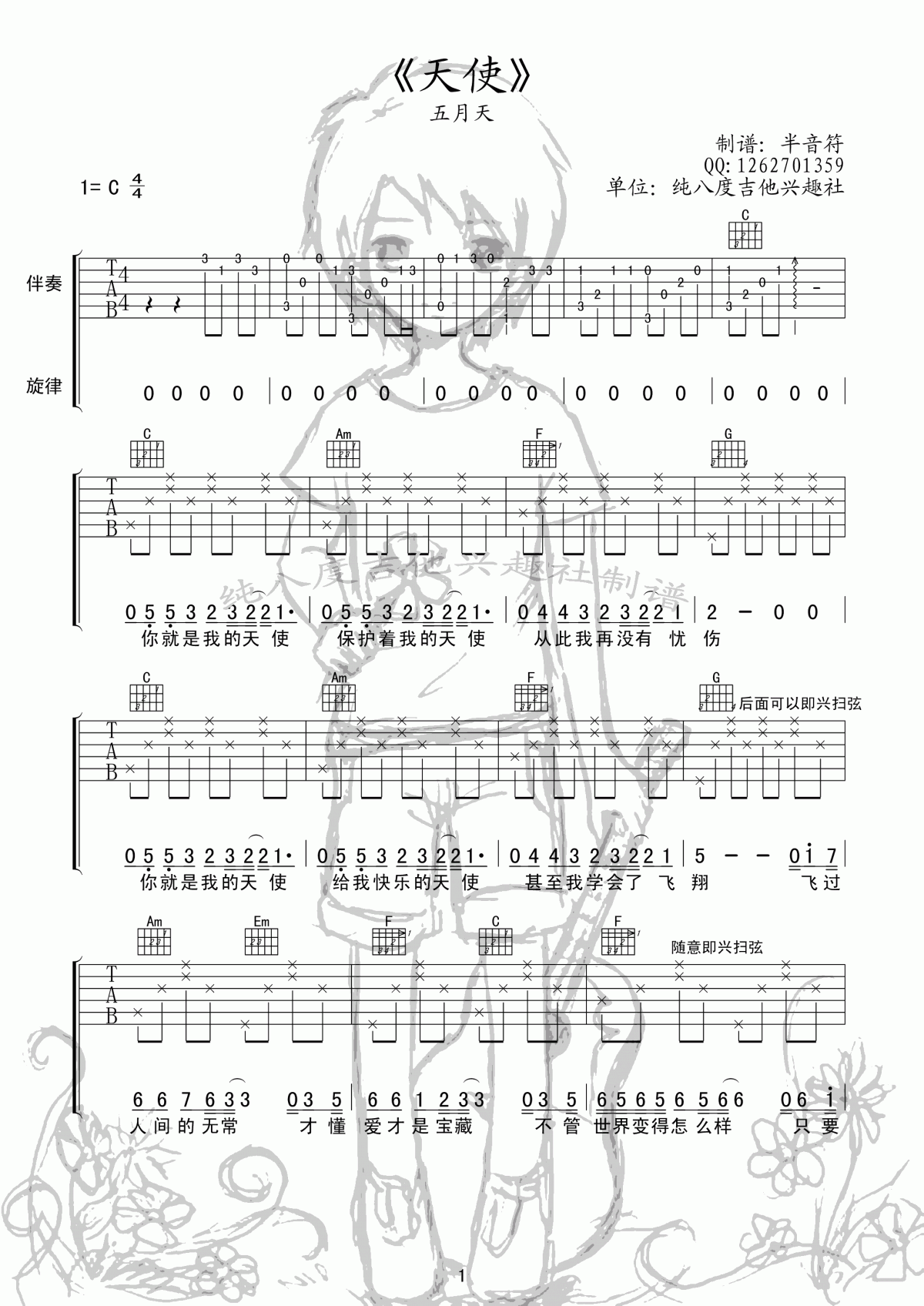 《五月天《天使吉他谱》(C调)》内容来自于互联网,不能保证内容的准确性与完整性,仅供学习交流欣赏,请勿用于其它用途,内容版权归原作者及来源网站所有,如有侵犯到您的权益请来信告知,我们将及时删除。