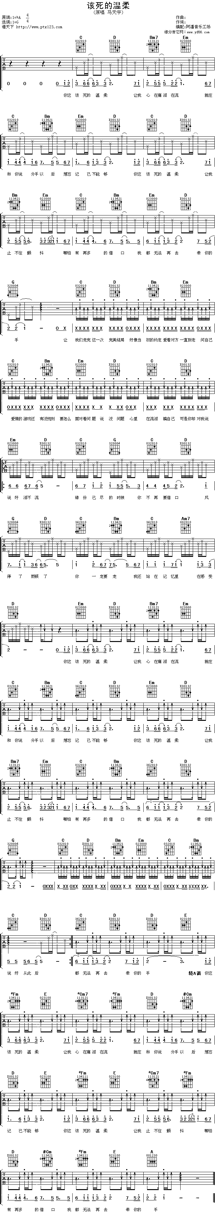 《马天《该死的温柔吉他谱》》内容来自于互联网,不能保证内容的准确性与完整性,仅供学习交流欣赏,请勿用于其它用途,内容版权归原作者及来源网站所有,如有侵犯到您的权益请来信告知,我们将及时删除。
