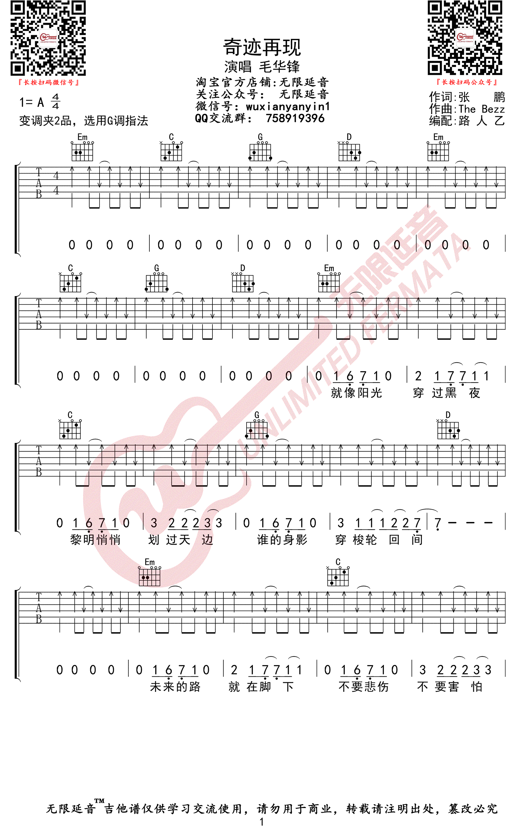 《毛华锋《奇迹再现吉他谱》》内容来自于互联网,不能保证内容的准确性与完整性,仅供学习交流欣赏,请勿用于其它用途,内容版权归原作者及来源网站所有,如有侵犯到您的权益请来信告知,我们将及时删除。