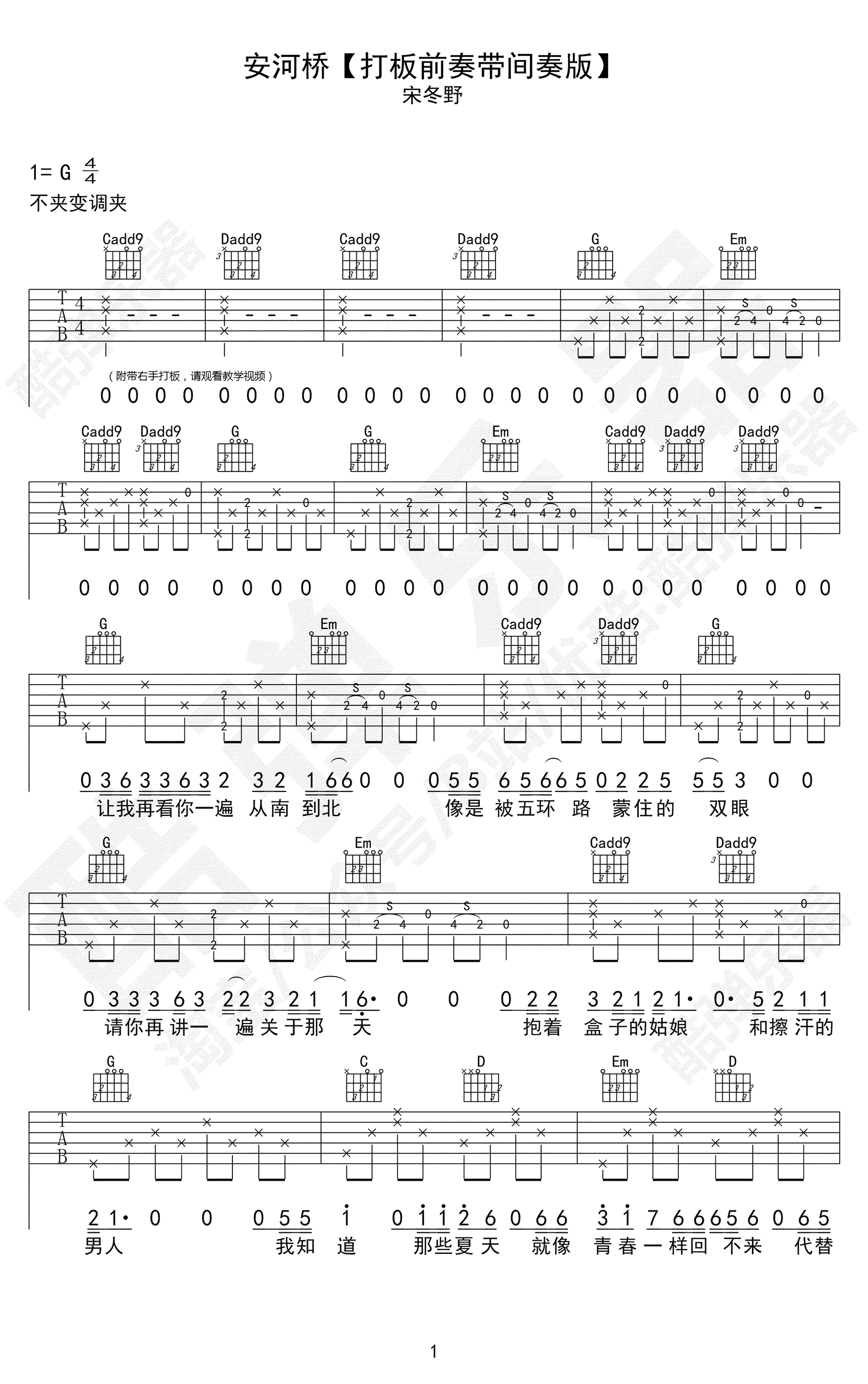 《宋冬野《安河桥吉他谱》(G调)》内容来自于互联网,不能保证内容的准确性与完整性,仅供学习交流欣赏,请勿用于其它用途,内容版权归原作者及来源网站所有,如有侵犯到您的权益请来信告知,我们将及时删除。