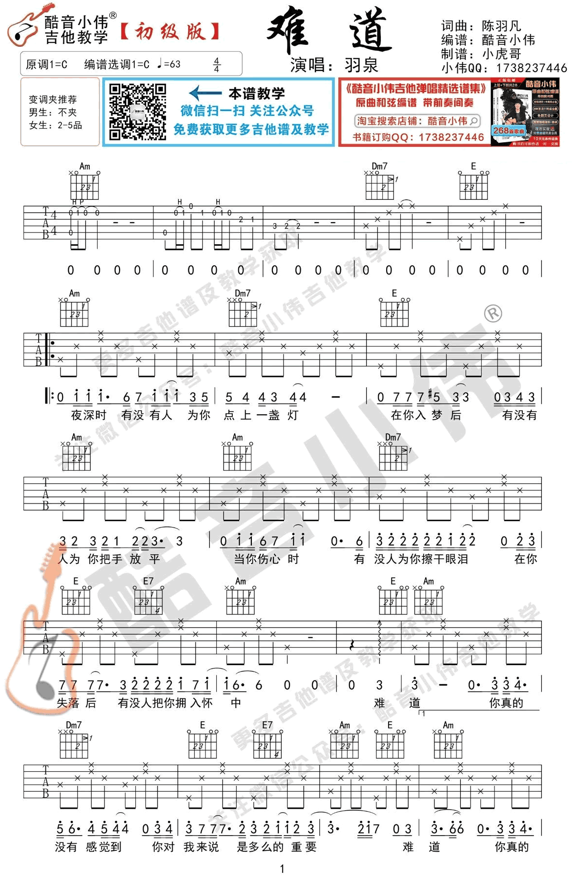 《《难道吉他谱》》内容来自于互联网,不能保证内容的准确性与完整性,仅供学习交流欣赏,请勿用于其它用途,内容版权归原作者及来源网站所有,如有侵犯到您的权益请来信告知,我们将及时删除。