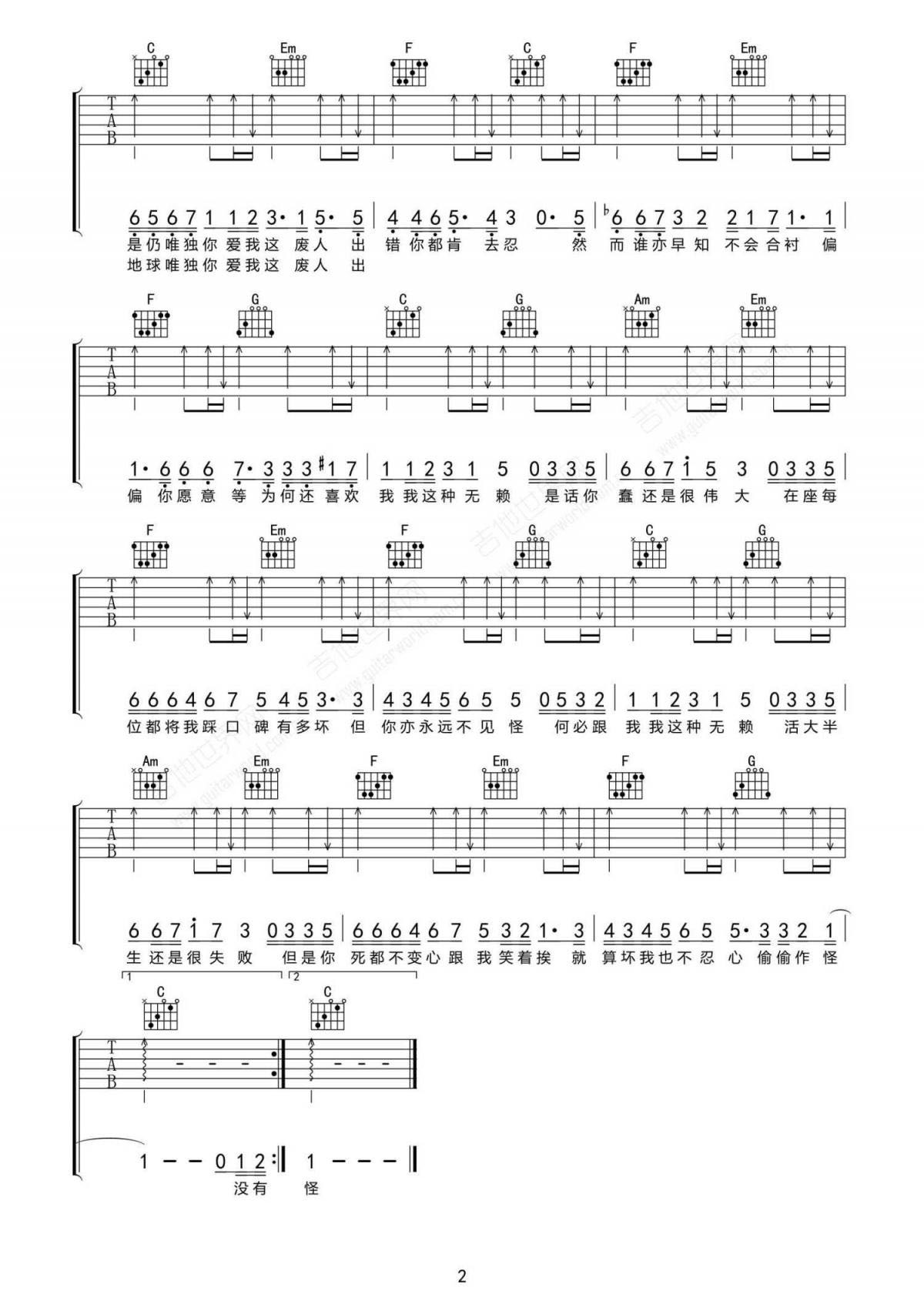 《郑中基《无赖吉他谱》(C调)》内容来自于互联网,不能保证内容的准确性与完整性,仅供学习交流欣赏,请勿用于其它用途,内容版权归原作者及来源网站所有,如有侵犯到您的权益请来信告知,我们将及时删除。