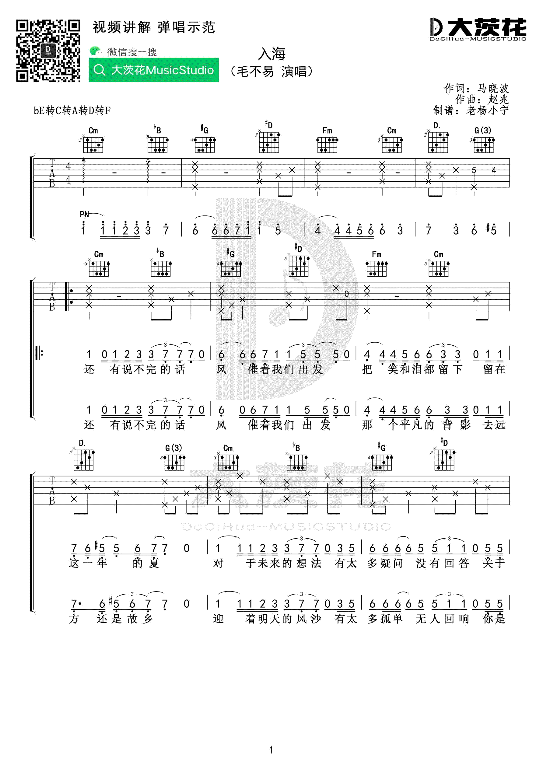 "入海" 吉他谱,由毛不易演唱,是一首深受毕业季喜爱的歌曲。该谱以入海的六线谱形式呈现,忠实还原原版编曲。通过五张高清图片谱,清晰展示了扫弦和分解弹奏方式,使学习更加便捷。这一份精心编排的谱子由大茨花音乐工作室制作,定期更新以确保质量。无论你是吉他初学者还是资