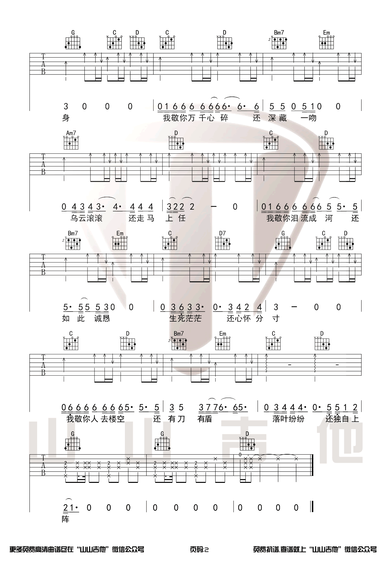 《万茜《敬你吉他谱》》内容来自于互联网,不能保证内容的准确性与完整性,仅供学习交流欣赏,请勿用于其它用途,内容版权归原作者及来源网站所有,如有侵犯到您的权益请来信告知,我们将及时删除。