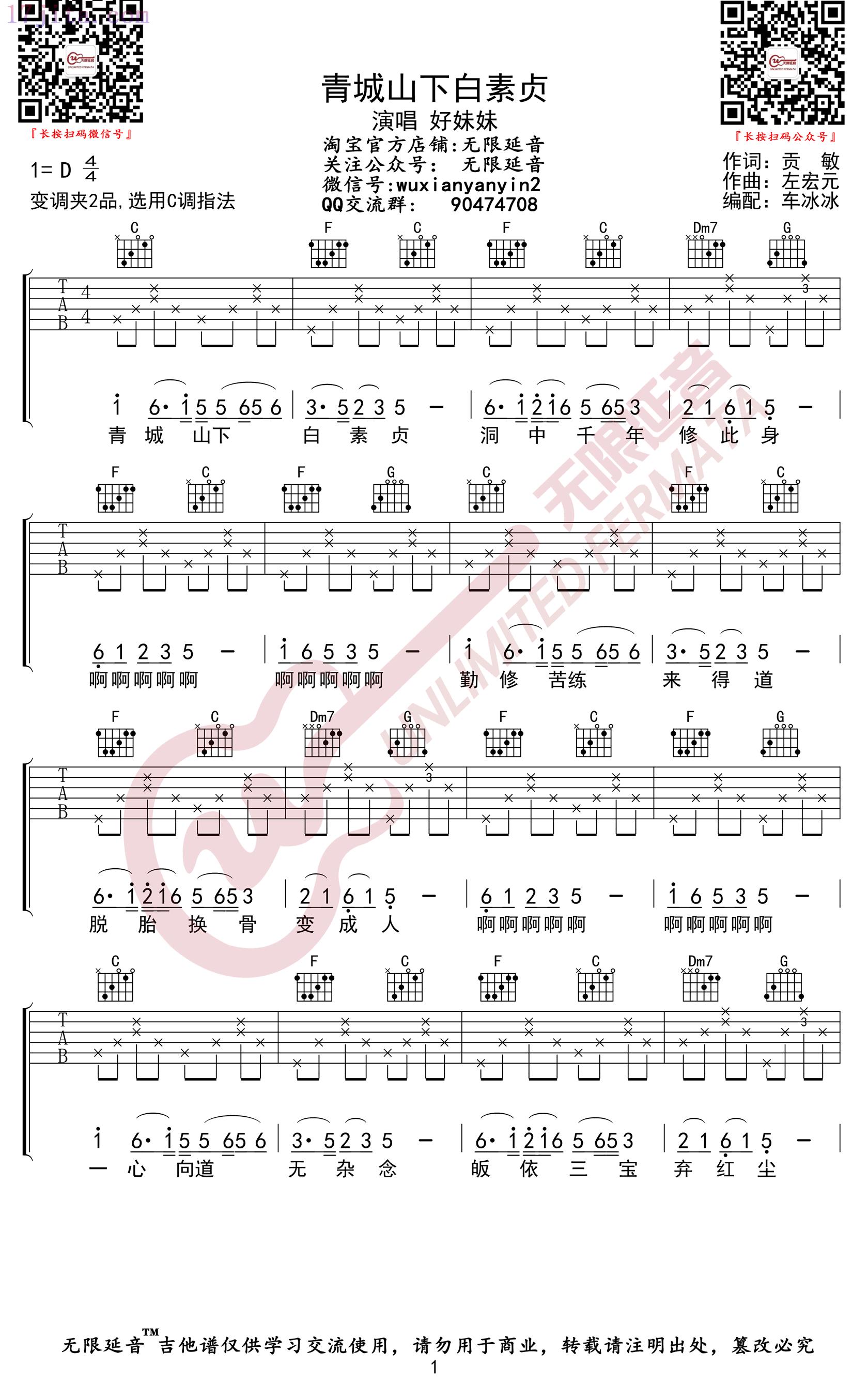 《好妹妹《青城山下白素贞吉他谱》》内容来自于互联网,不能保证内容的准确性与完整性,仅供学习交流欣赏,请勿用于其它用途,内容版权归原作者及来源网站所有,如有侵犯到您的权益请来信告知,我们将及时删除。