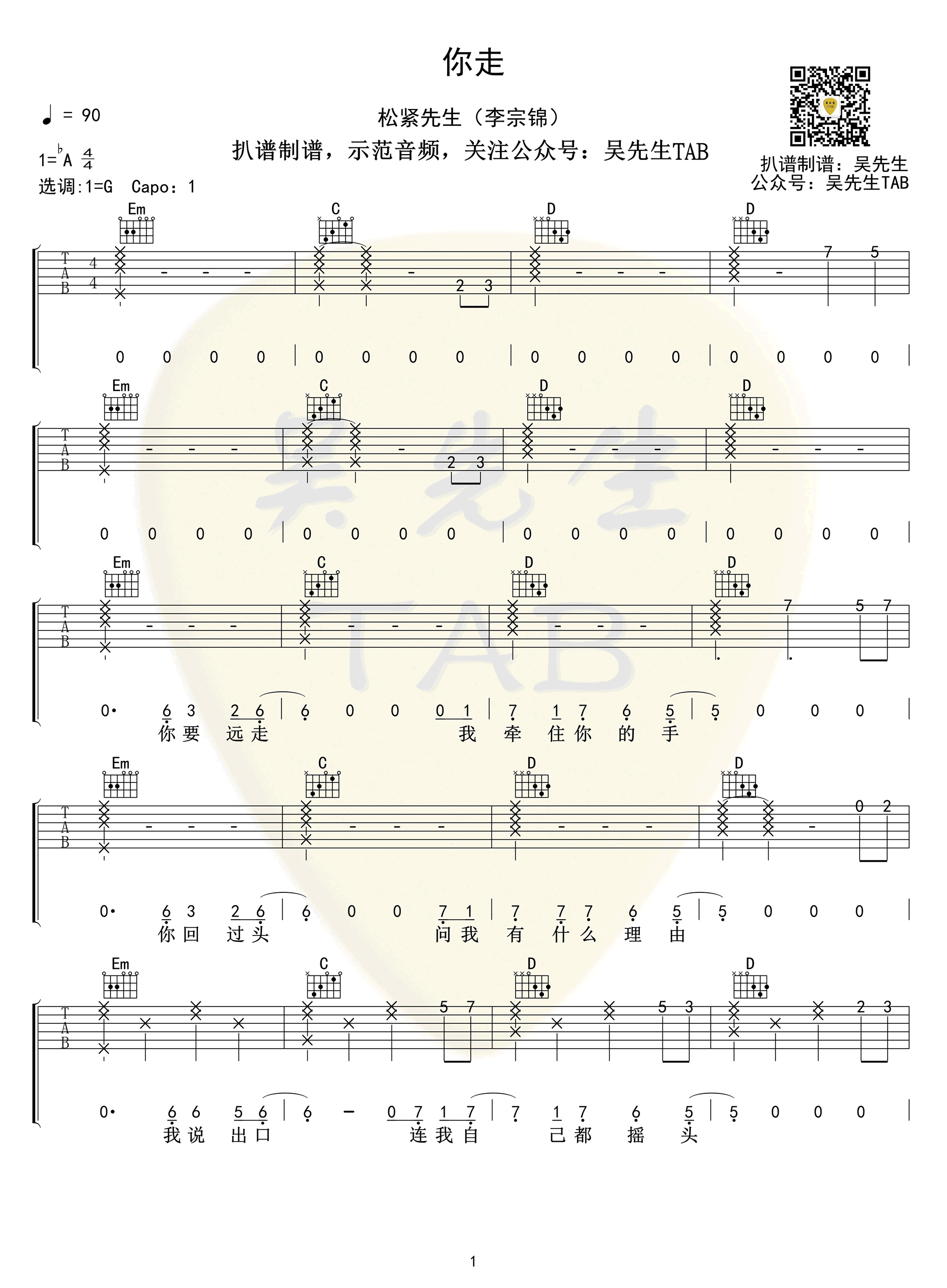 《《你走吉他谱》》内容来自于互联网,不能保证内容的准确性与完整性,仅供学习交流欣赏,请勿用于其它用途,内容版权归原作者及来源网站所有,如有侵犯到您的权益请来信告知,我们将及时删除。