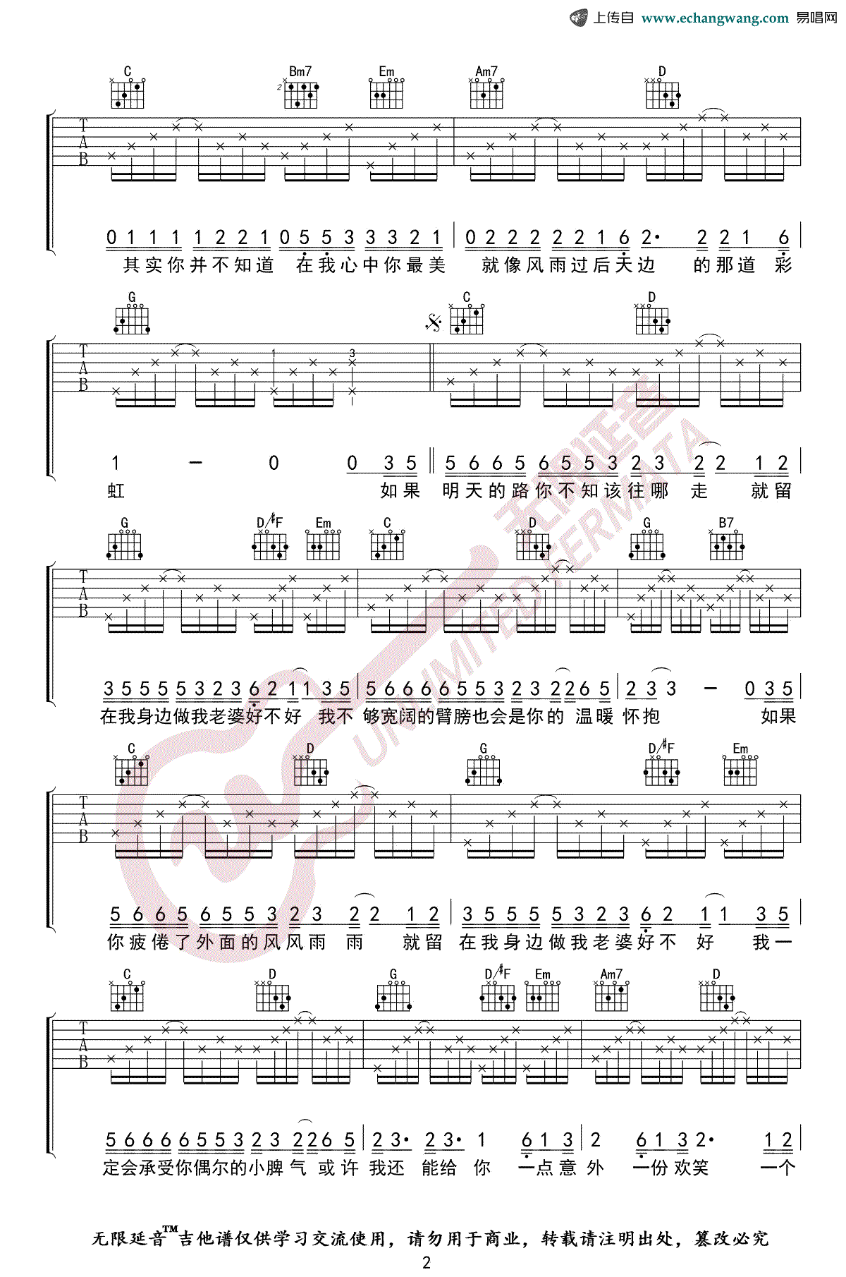 《徐誉滕《做我老婆好不好吉他谱》》内容来自于互联网,不能保证内容的准确性与完整性,仅供学习交流欣赏,请勿用于其它用途,内容版权归原作者及来源网站所有,如有侵犯到您的权益请来信告知,我们将及时删除。