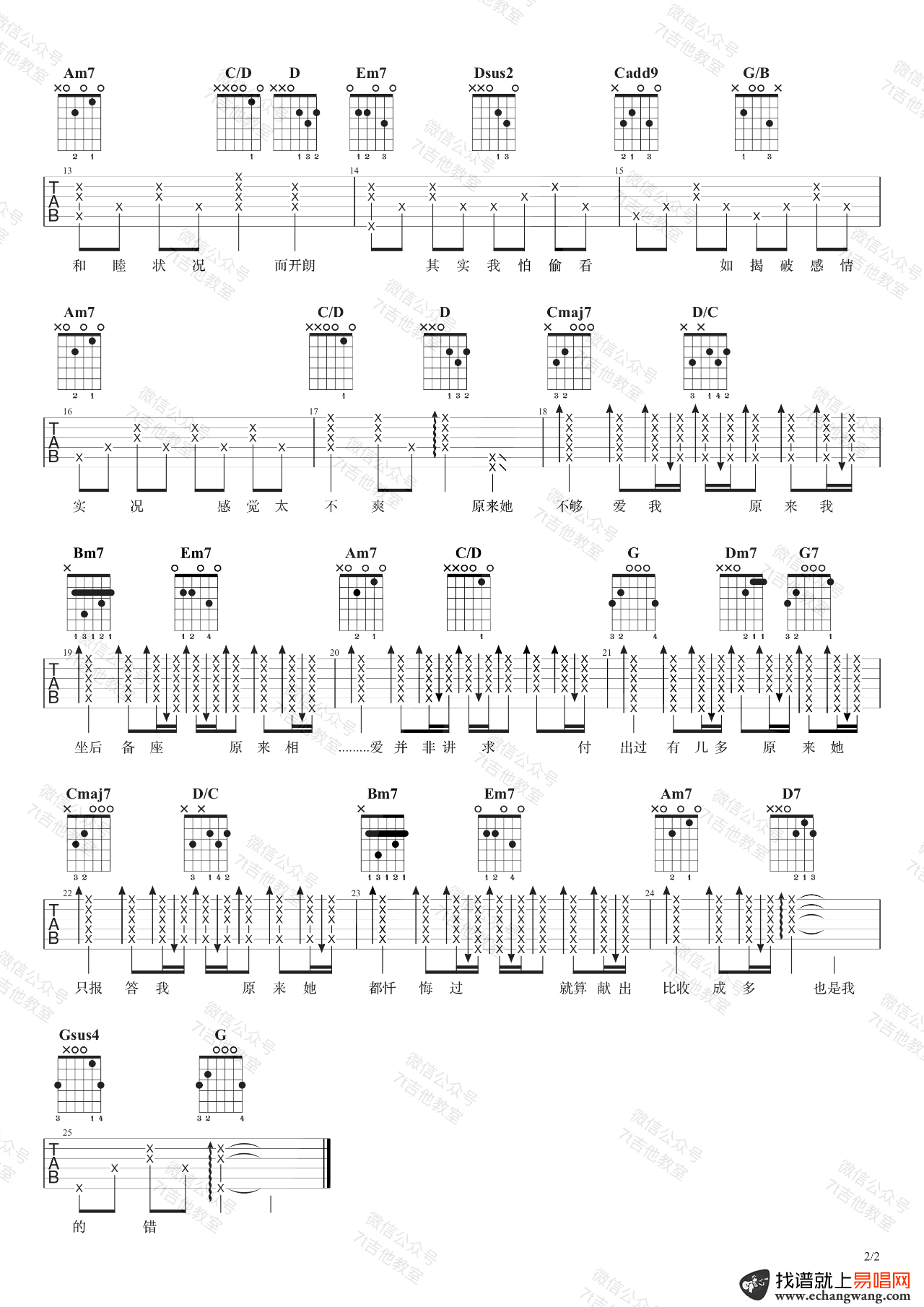 《不够《原来她爱我吉他谱》(G调)》内容来自于互联网,不能保证内容的准确性与完整性,仅供学习交流欣赏,请勿用于其它用途,内容版权归原作者及来源网站所有,如有侵犯到您的权益请来信告知,我们将及时删除。