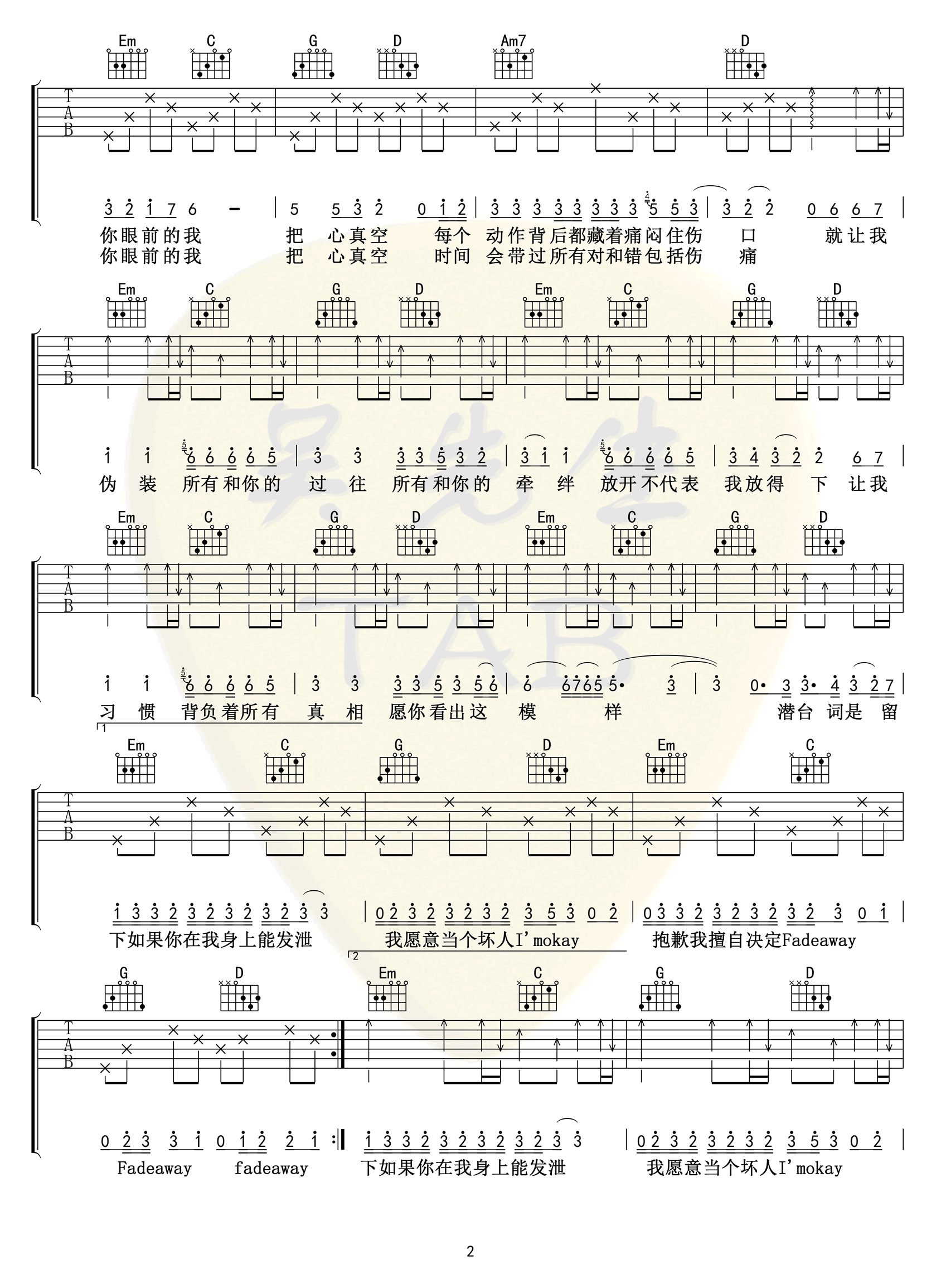 《邱锋泽和黄伟晋《潜台词吉他谱》(G调)》内容来自于互联网,不能保证内容的准确性与完整性,仅供学习交流欣赏,请勿用于其它用途,内容版权归原作者及来源网站所有,如有侵犯到您的权益请来信告知,我们将及时删除。