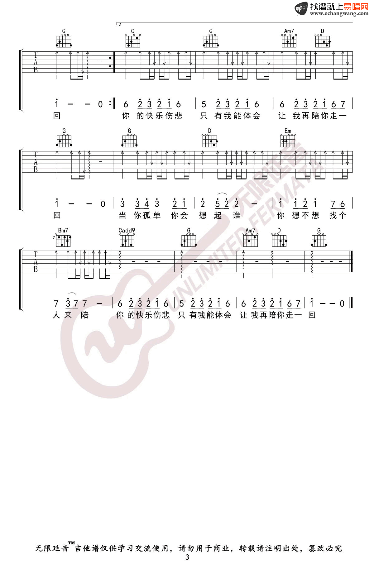 《张栋梁《当你孤单你会想起谁吉他谱》(G调)》内容来自于互联网,不能保证内容的准确性与完整性,仅供学习交流欣赏,请勿用于其它用途,内容版权归原作者及来源网站所有,如有侵犯到您的权益请来信告知,我们将及时删除。