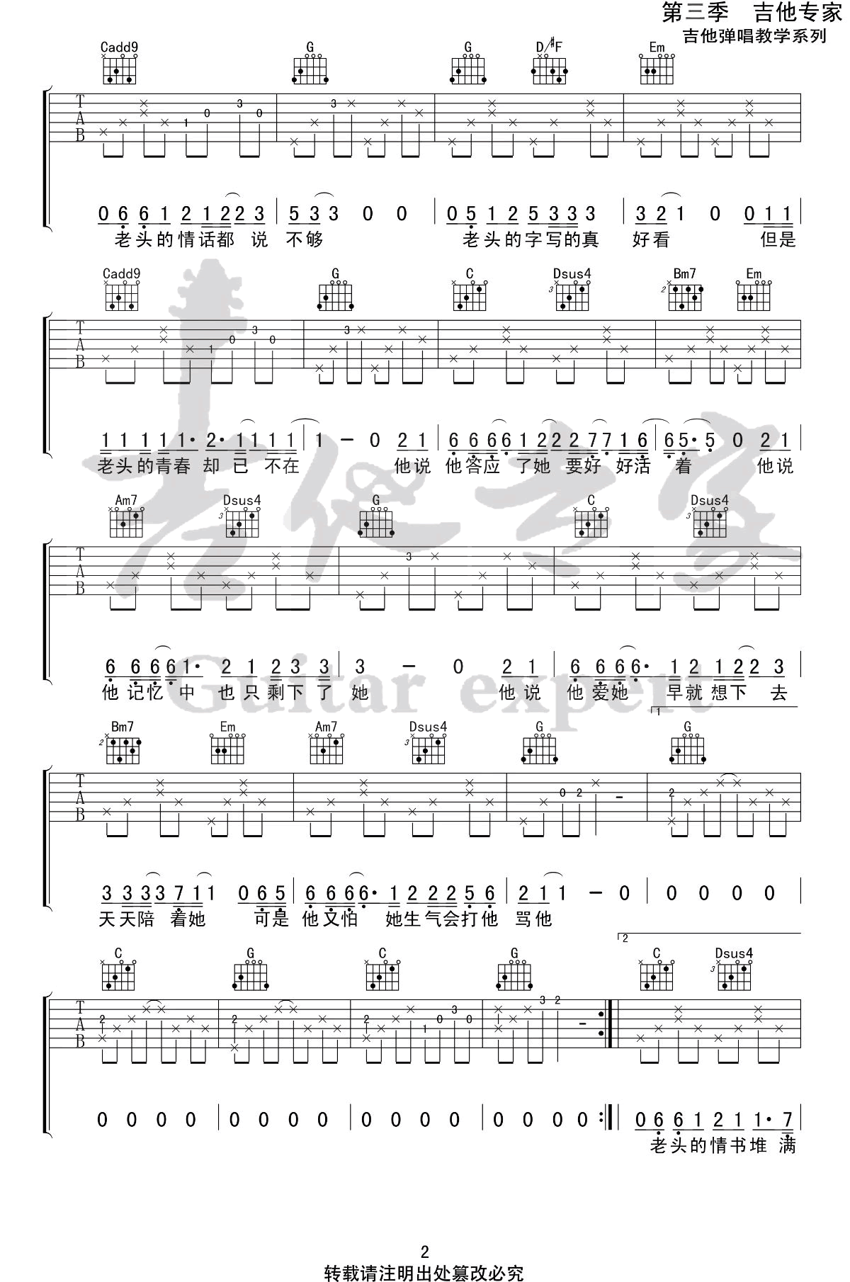 《曹方《老头的情书吉他谱》(G调)》内容来自于互联网,不能保证内容的准确性与完整性,仅供学习交流欣赏,请勿用于其它用途,内容版权归原作者及来源网站所有,如有侵犯到您的权益请来信告知,我们将及时删除。