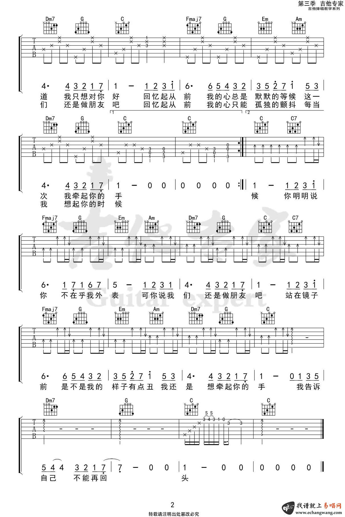 《杨振宇《我们还是做朋友吧吉他谱》(C调)》内容来自于互联网,不能保证内容的准确性与完整性,仅供学习交流欣赏,请勿用于其它用途,内容版权归原作者及来源网站所有,如有侵犯到您的权益请来信告知,我们将及时删除。