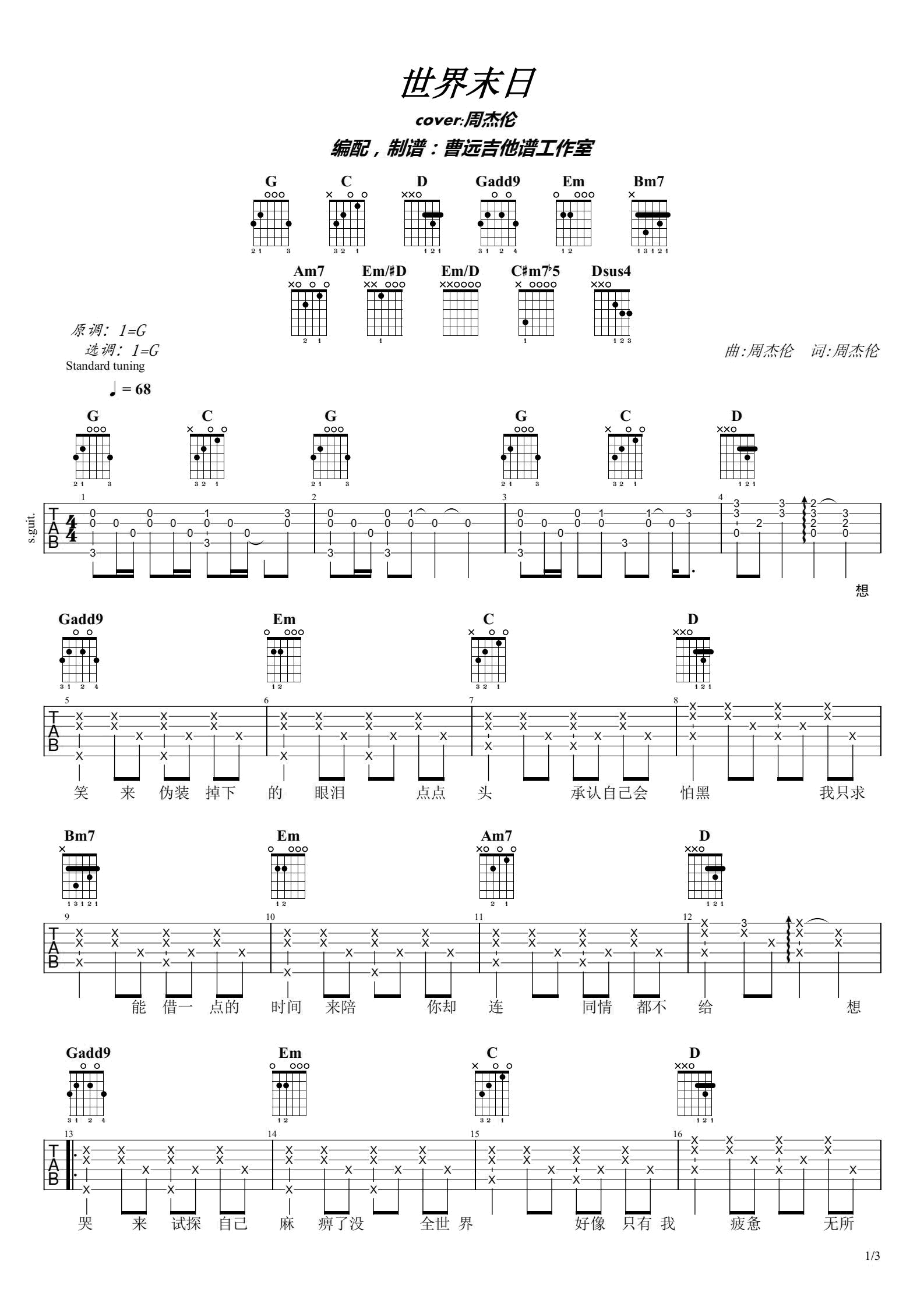 周杰伦《世界末日吉他谱》(G调)
