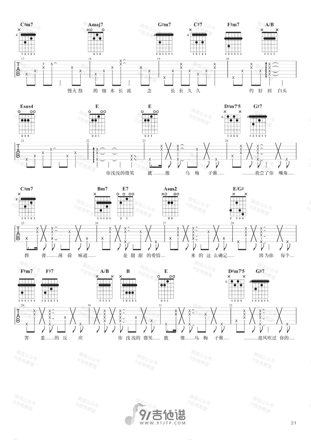 《李荣浩《乌梅子酱吉他谱》(E调)》内容来自于互联网,不能保证内容的准确性与完整性,仅供学习交流欣赏,请勿用于其它用途,内容版权归原作者及来源网站所有,如有侵犯到您的权益请来信告知,我们将及时删除。