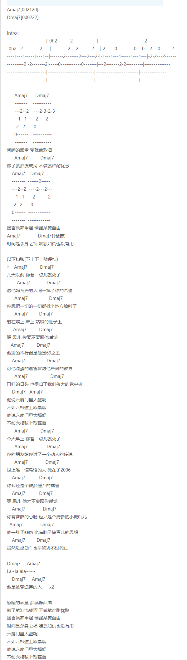 《宋冬野《梦遗少年吉他谱》》内容来自于互联网,不能保证内容的准确性与完整性,仅供学习交流欣赏,请勿用于其它用途,内容版权归原作者及来源网站所有,如有侵犯到您的权益请来信告知,我们将及时删除。