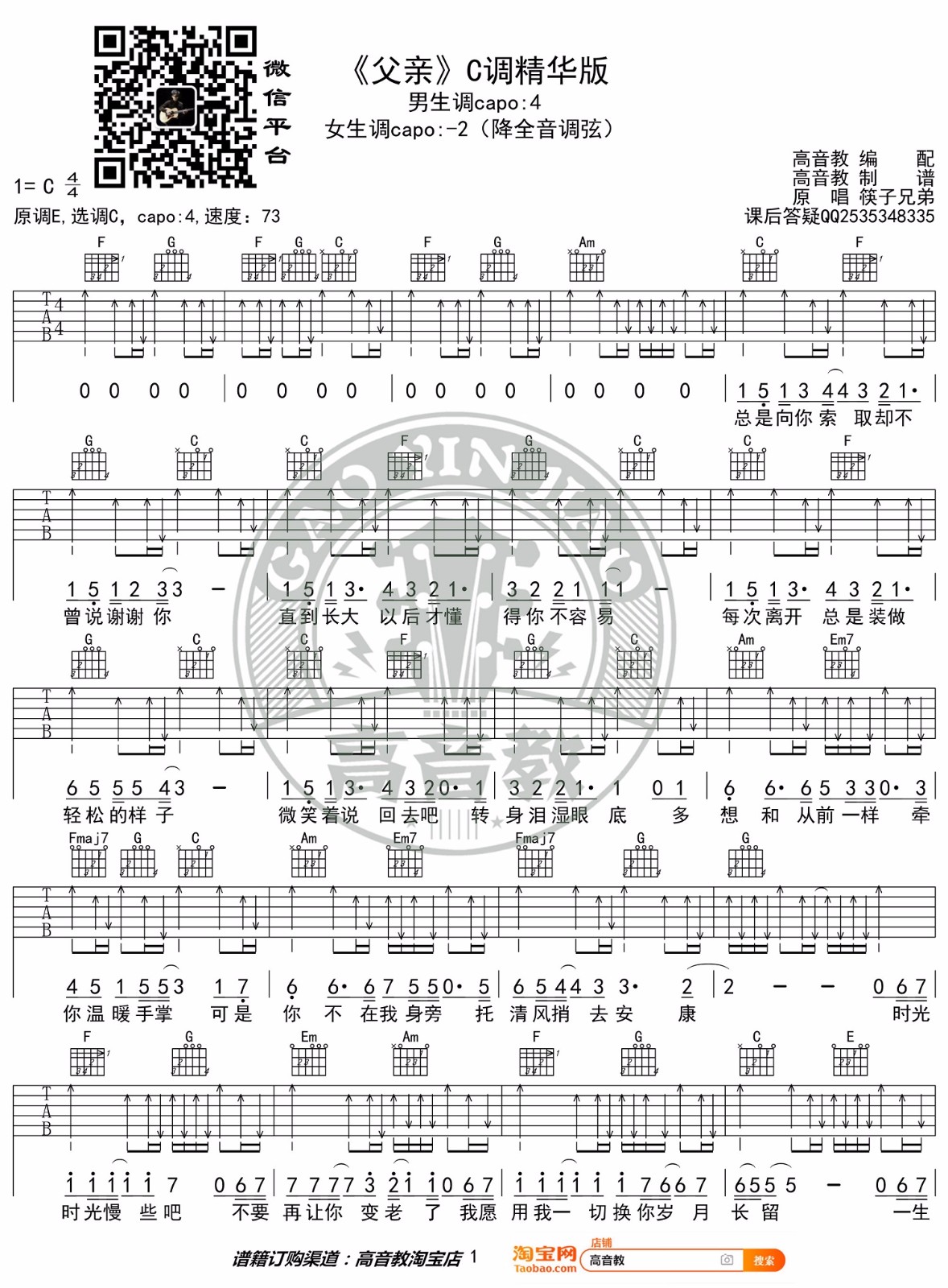 《筷子兄弟《父亲吉他谱》(C调)》内容来自于互联网,不能保证内容的准确性与完整性,仅供学习交流欣赏,请勿用于其它用途,内容版权归原作者及来源网站所有,如有侵犯到您的权益请来信告知,我们将及时删除。