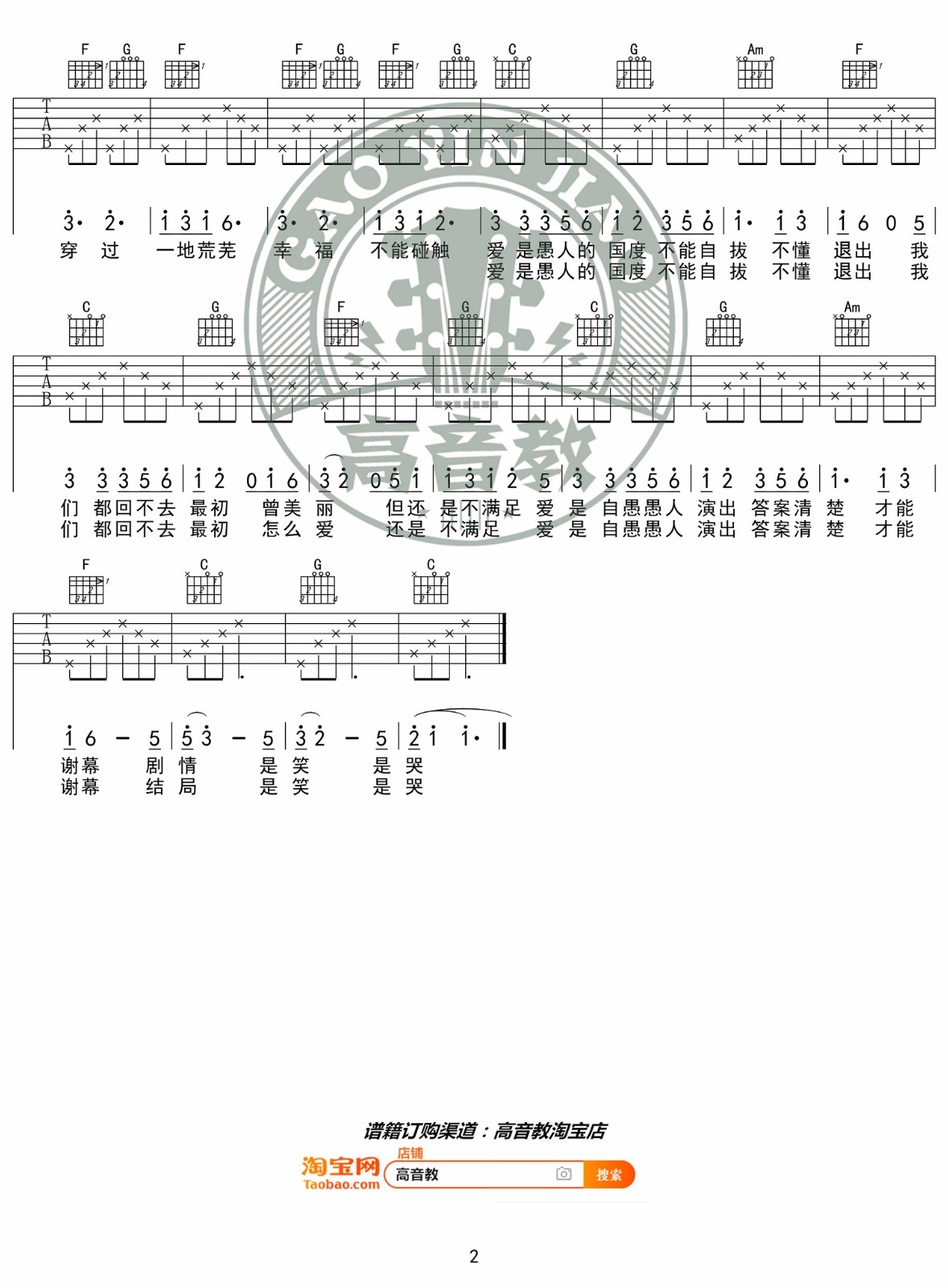 《孙燕姿《愚人的国度吉他谱》(C调)》内容来自于互联网,不能保证内容的准确性与完整性,仅供学习交流欣赏,请勿用于其它用途,内容版权归原作者及来源网站所有,如有侵犯到您的权益请来信告知,我们将及时删除。