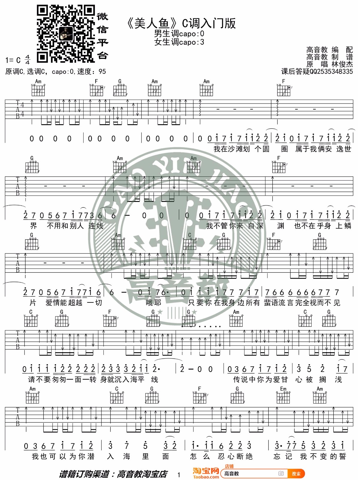 《林俊杰《美人鱼吉他谱》(C调)》内容来自于互联网,不能保证内容的准确性与完整性,仅供学习交流欣赏,请勿用于其它用途,内容版权归原作者及来源网站所有,如有侵犯到您的权益请来信告知,我们将及时删除。