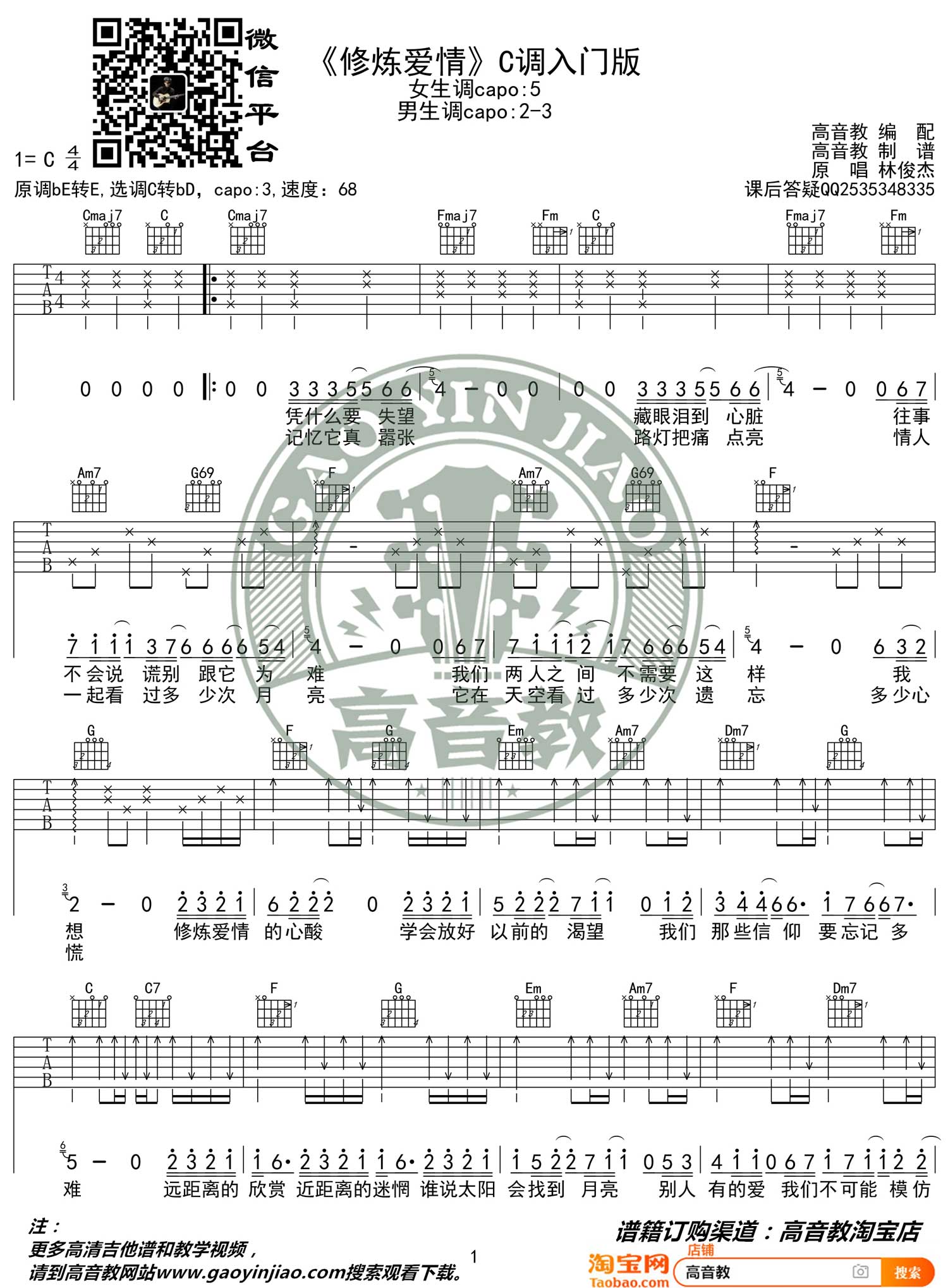 《林俊杰《修炼爱情吉他谱》(C调)》内容来自于互联网,不能保证内容的准确性与完整性,仅供学习交流欣赏,请勿用于其它用途,内容版权归原作者及来源网站所有,如有侵犯到您的权益请来信告知,我们将及时删除。