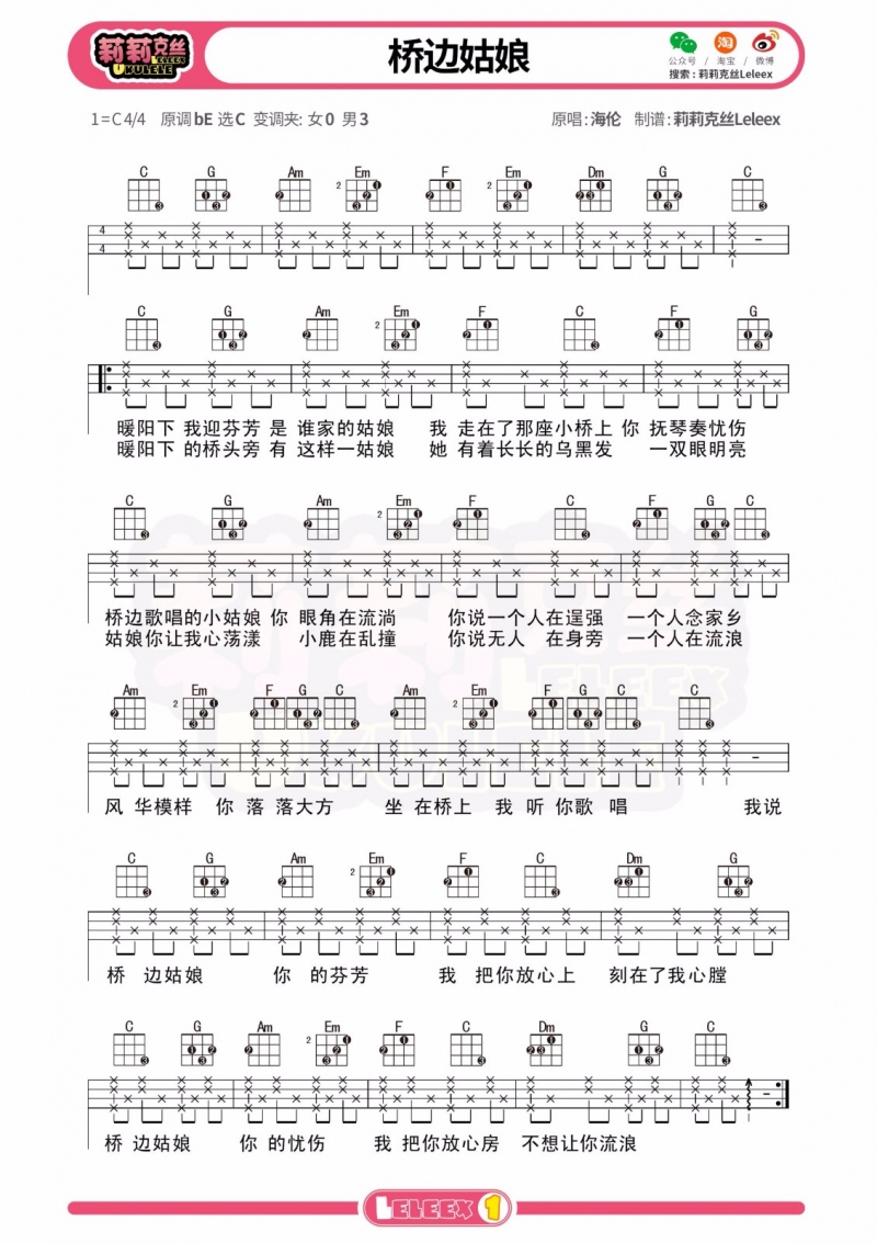 《海伦《桥边姑娘吉他谱》(C调)》内容来自于互联网,不能保证内容的准确性与完整性,仅供学习交流欣赏,请勿用于其它用途,内容版权归原作者及来源网站所有,如有侵犯到您的权益请来信告知,我们将及时删除。