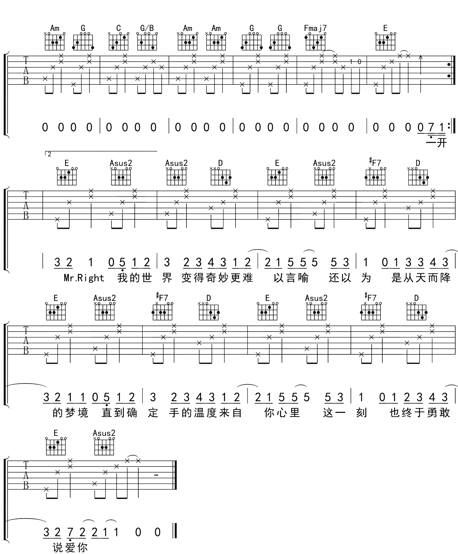 《蔡依林《说爱你吉他谱》(A调)》内容来自于互联网,不能保证内容的准确性与完整性,仅供学习交流欣赏,请勿用于其它用途,内容版权归原作者及来源网站所有,如有侵犯到您的权益请来信告知,我们将及时删除。