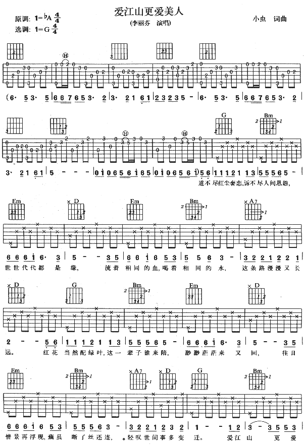 《李丽芬《爱江山更爱美人吉他谱》(G调)》内容来自于互联网,不能保证内容的准确性与完整性,仅供学习交流欣赏,请勿用于其它用途,内容版权归原作者及来源网站所有,如有侵犯到您的权益请来信告知,我们将及时删除。