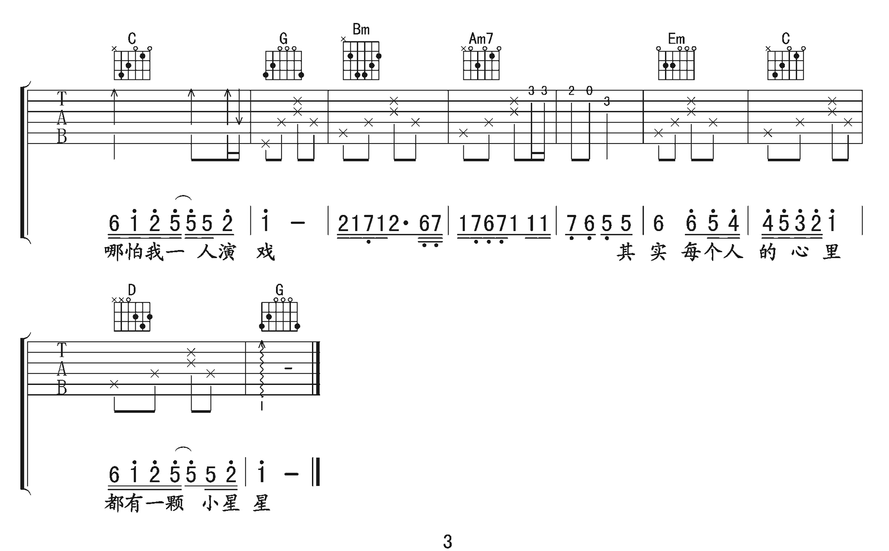 《汪苏泷《小星星吉他谱》(G调)》内容来自于互联网,不能保证内容的准确性与完整性,仅供学习交流欣赏,请勿用于其它用途,内容版权归原作者及来源网站所有,如有侵犯到您的权益请来信告知,我们将及时删除。