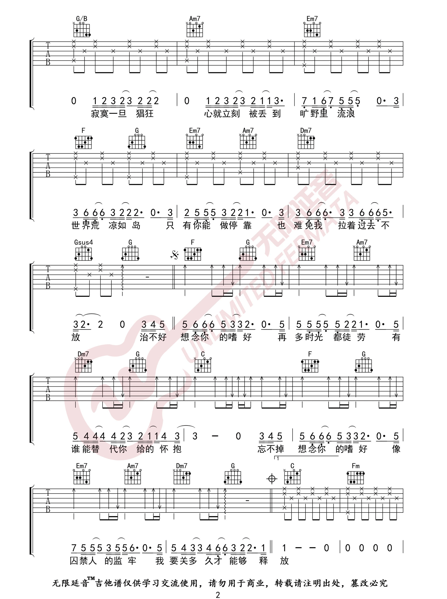 《颜人中《嗜好吉他谱》(C调)》内容来自于互联网,不能保证内容的准确性与完整性,仅供学习交流欣赏,请勿用于其它用途,内容版权归原作者及来源网站所有,如有侵犯到您的权益请来信告知,我们将及时删除。
