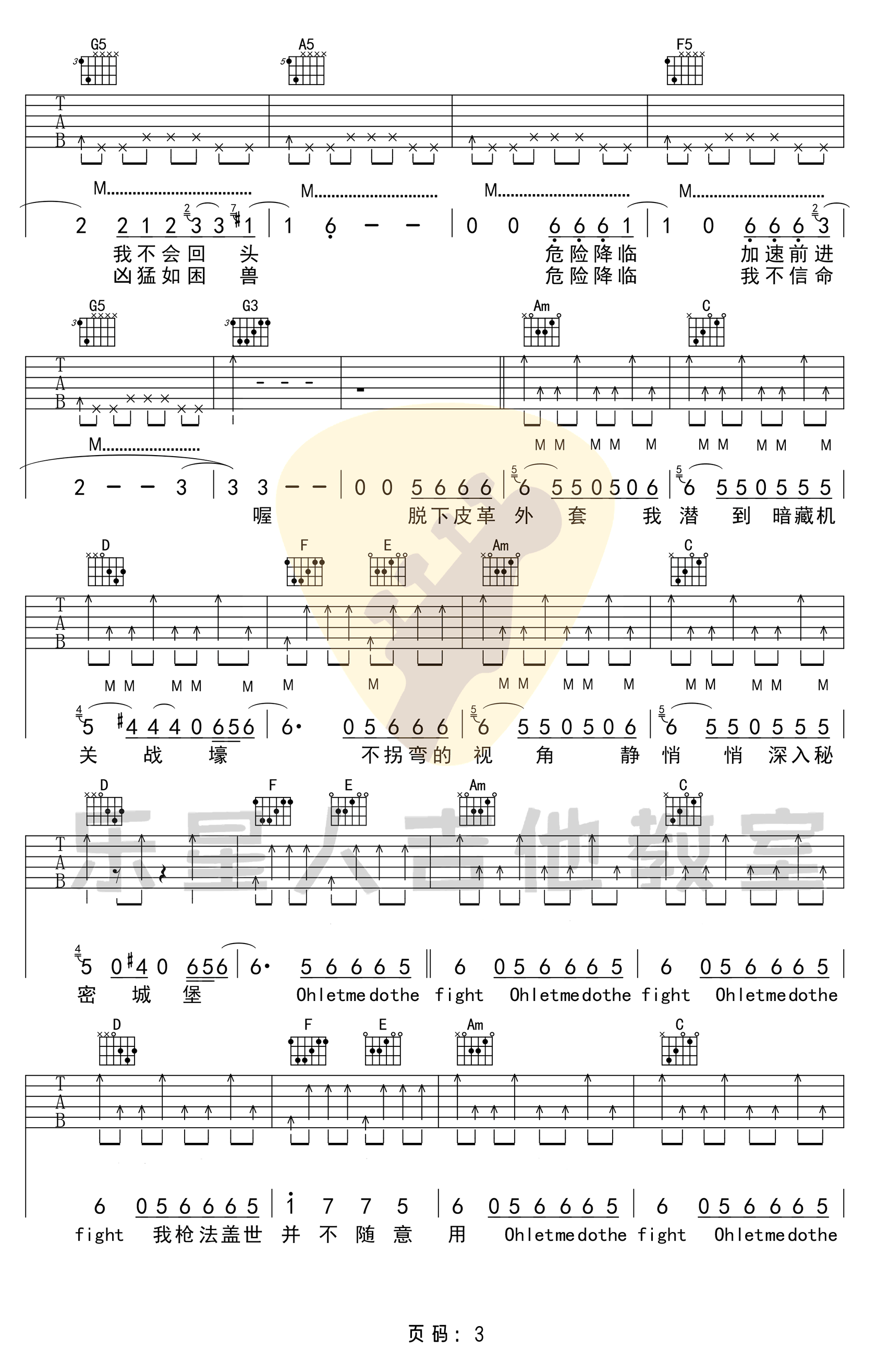 华晨宇《荒野魂斗罗吉他谱》(C调)
