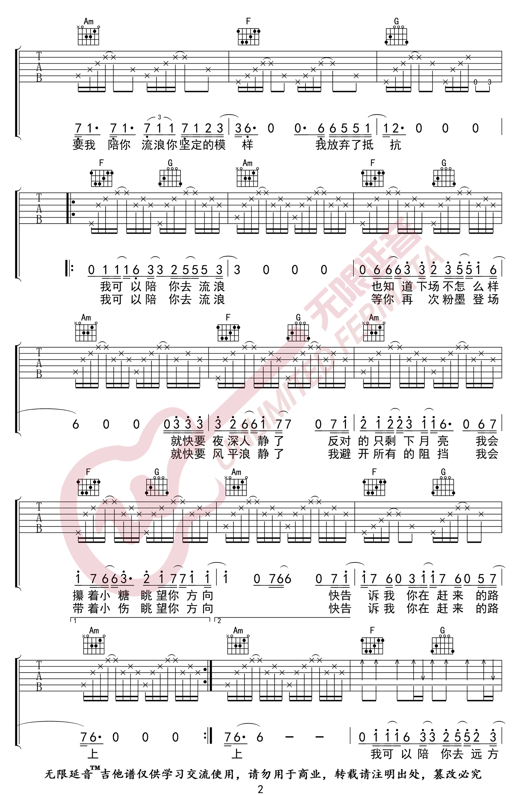 《薛之谦《陪你去流浪吉他谱》(C调)》内容来自于互联网,不能保证内容的准确性与完整性,仅供学习交流欣赏,请勿用于其它用途,内容版权归原作者及来源网站所有,如有侵犯到您的权益请来信告知,我们将及时删除。