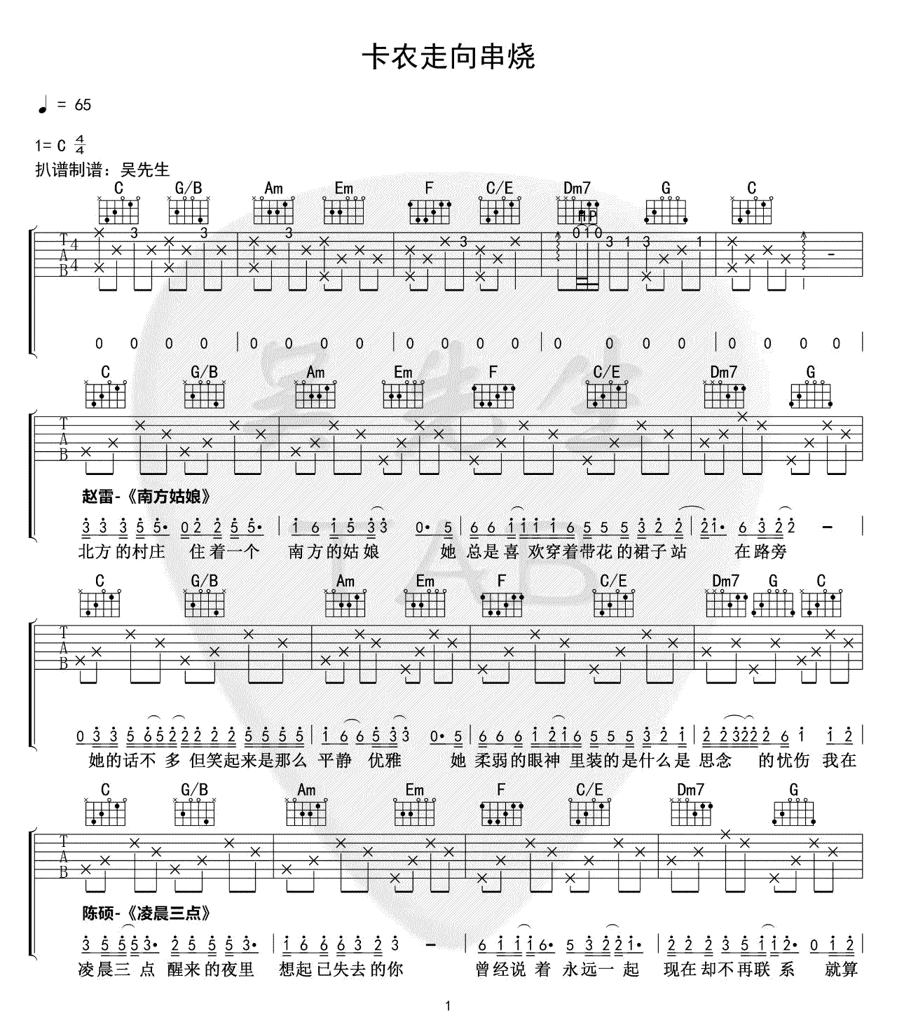 您现在的位置是:首页 > 吉他谱 > 柏松《卡农吉他谱》 柏松《卡农吉他谱》 日期:2024-01-21 20:50:01 柏松 这份曲谱分享了一种名为“卡农”的音乐编曲技巧,以及包含多首流行歌曲的串烧版本。吴先生经过精心编配,运用卡农技法将赵雷的《南方姑娘》,陈硕的《凌晨三点》,李圣杰的《最近》《痴心绝对》,莫文蔚的《忽然之间》,林俊杰的《记得》,柏松的《世间美好与你环环相扣》,容祖儿