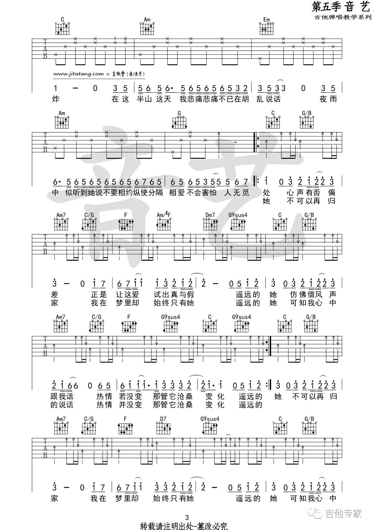 《潘源《遥远的她吉他谱》(C调)》内容来自于互联网,不能保证内容的准确性与完整性,仅供学习交流欣赏,请勿用于其它用途,内容版权归原作者及来源网站所有,如有侵犯到您的权益请来信告知,我们将及时删除。