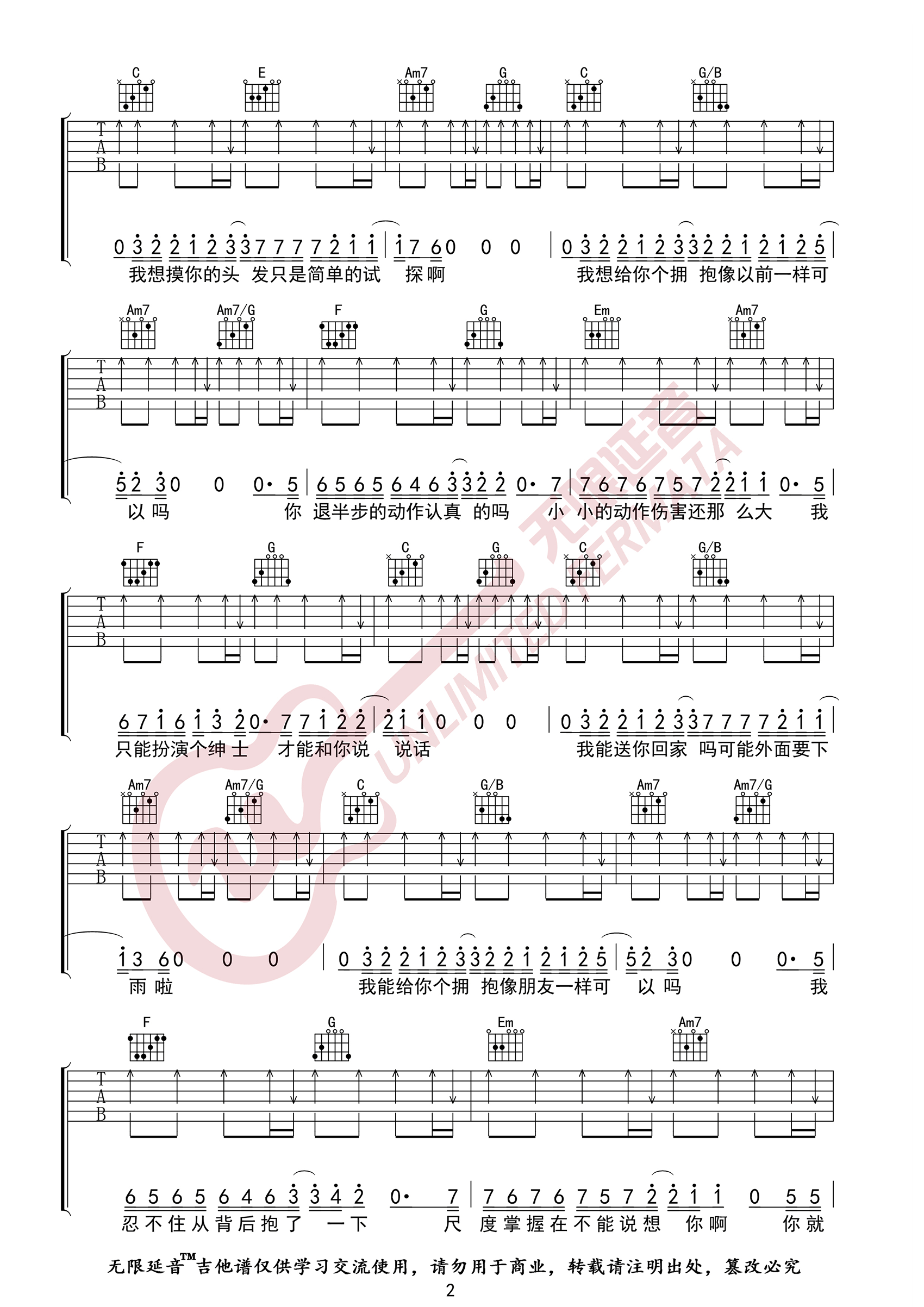 《薛之谦《绅士吉他谱》(C调)》内容来自于互联网,不能保证内容的准确性与完整性,仅供学习交流欣赏,请勿用于其它用途,内容版权归原作者及来源网站所有,如有侵犯到您的权益请来信告知,我们将及时删除。